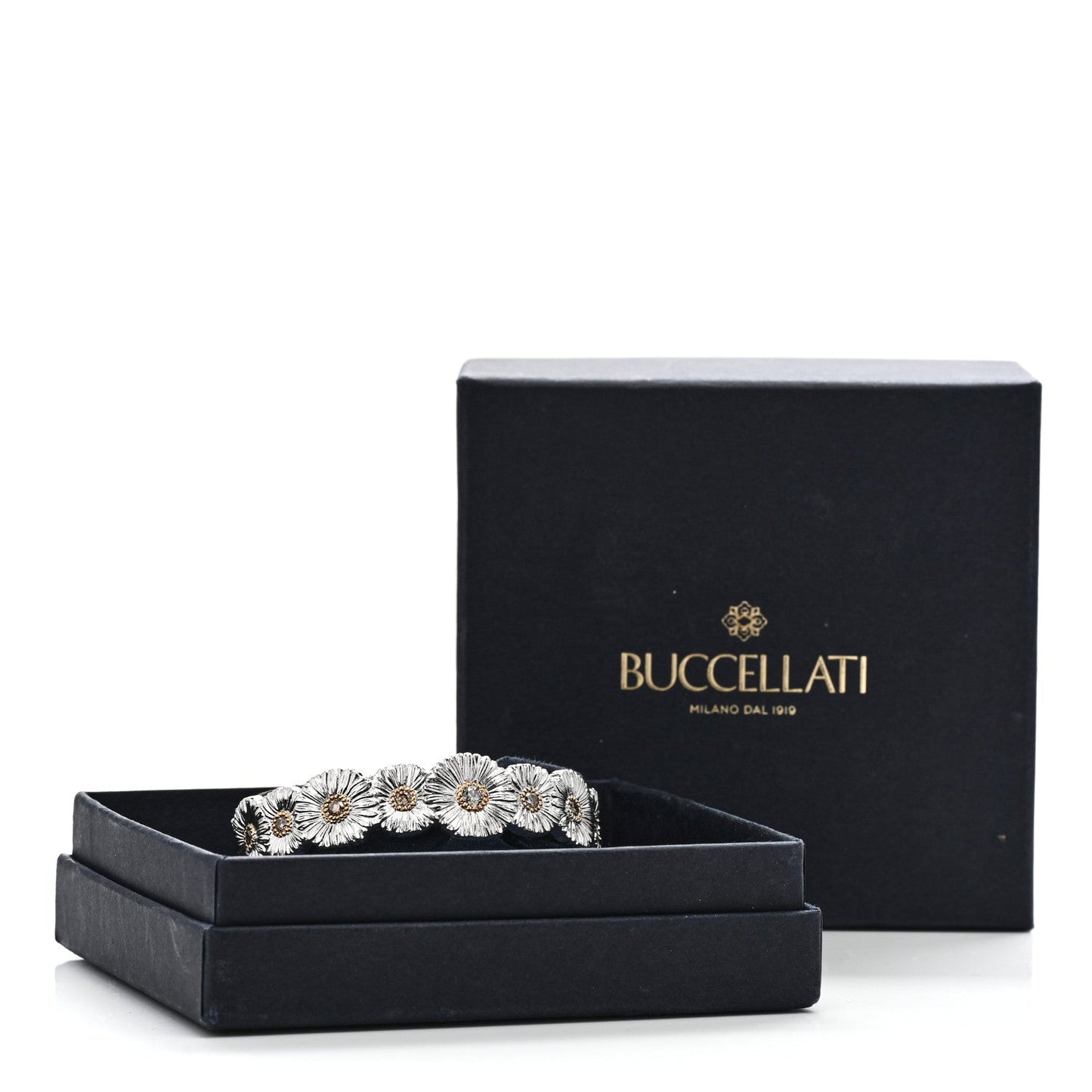 Buccellati/ Jewelry/ Bracelets /Buccellati Sterling Silver Vermeil Diamond Blossoms Daisy Narrow Cuff Bracelet