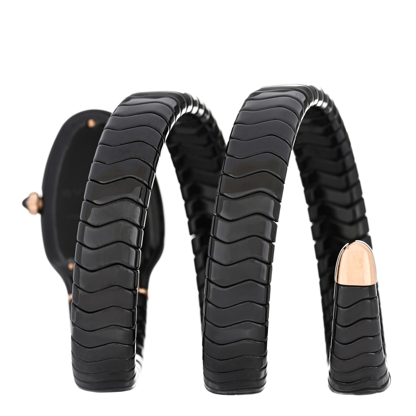 18K Rose Gold Ceramic Diamond Bezel 35mm Serpenti Tubogas Double Spiral Quartz Watch Black