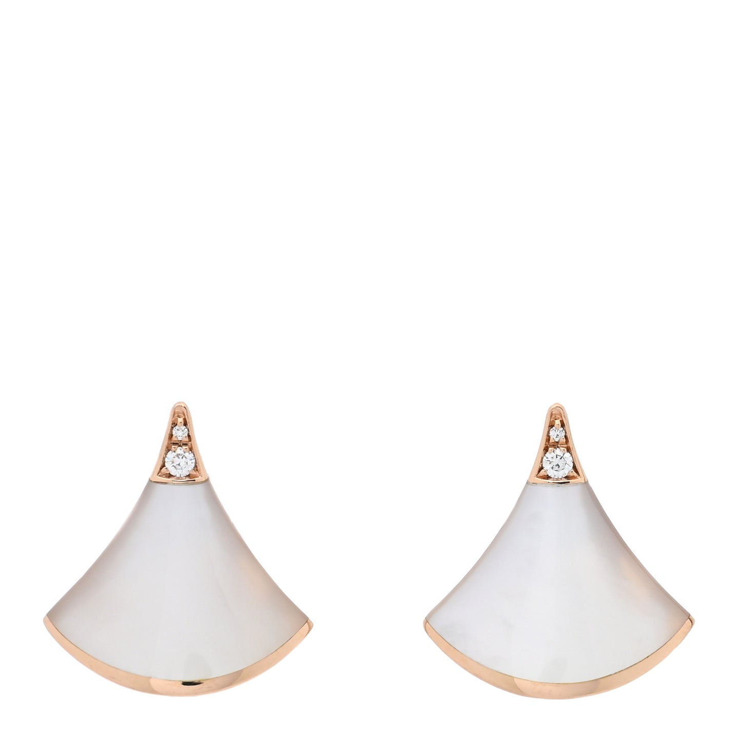 This is an authentic BULGARI 18K Rose Gold Diamond Mother of Pearl Divas' Dream Stud Earrings. The earrings are crafted of 18 karat rose gold and features the signature Divas' Dream motif set with mother of pearl and accented with round cut diamonds, approximately .03 total carat weight.Follow this item for alerts. Bulgari is a registered trademark of Bulgari. FASHIONPHILE is not affiliated with Bulgari.