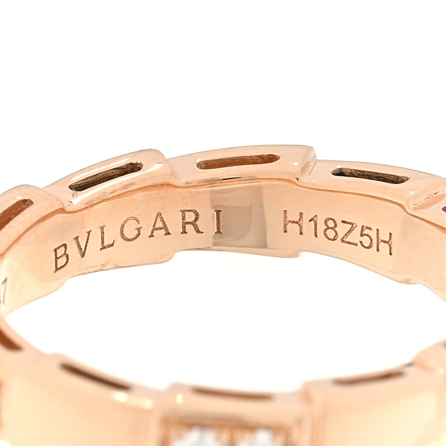 This is an authentic BULGARI 18K Rose Gold Diamond Serpenti Viper Ring 47 4. The ring is crafted of 18 karat rose gold and features a serpent motif band set with round brilliant cut diamonds, approximately .21 total carat weight.Follow this item for alerts. Bulgari is a registered trademark of Bulgari. FASHIONPHILE is not affiliated with Bulgari.