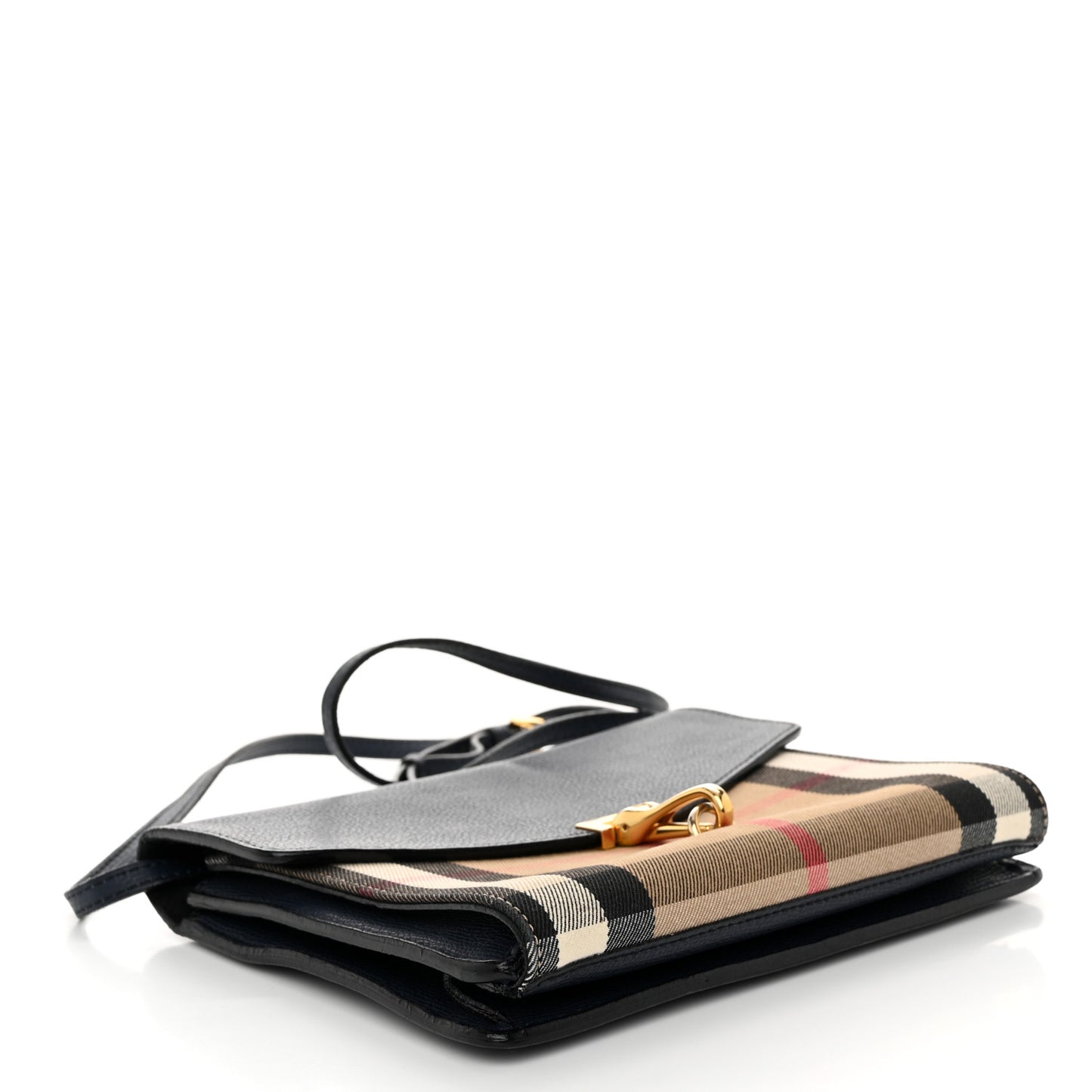 Burberry/ Bags/ Shoulder Bags /Burberry Derby Calfskin House Check Baby Macken Crossbody Bag Navy