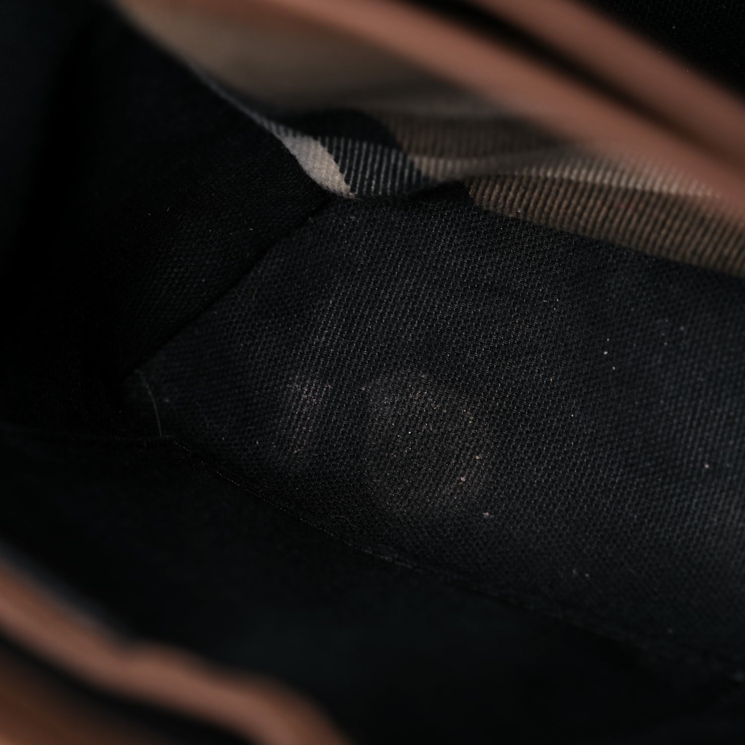 This is an authentic BURBERRY Derby Calfskin House Check Small Camberley in Dark Sand. This stylish bag is crafted of textured calfskin leather in brown and features a strap leather top handle, an optional shoulder strap, brass hardware and a small crossover flap with a faux strap magnetic closure. This opens to partitioned house check fabric interior with zipper and patch pockets.Follow this item for alerts. Burberry is a registered trademark of Burberry. FASHIONPHILE is not affiliated with Burberry.
