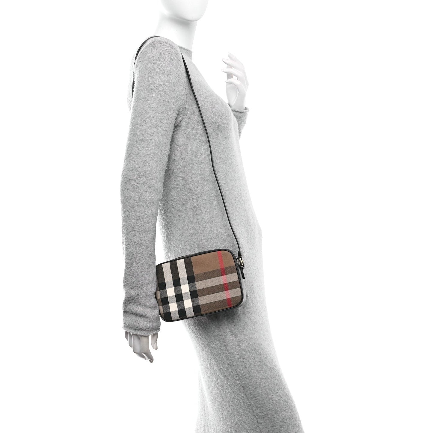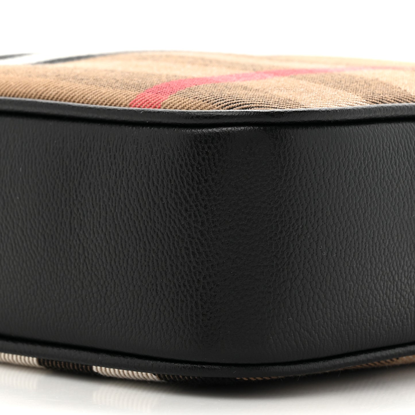 This is an authentic BURBERRY Giant Check Calfskin Small Camera Bag in Black. This sleek crossbody shoulder bag is crafted of Burberry checked canvas, with black leather trim. The bag features a black leather shoulder strap. The top zipper opens to a black fabric interior with a patch pocket.Follow this item for alerts. Burberry is a registered trademark of Burberry. FASHIONPHILE is not affiliated with Burberry.