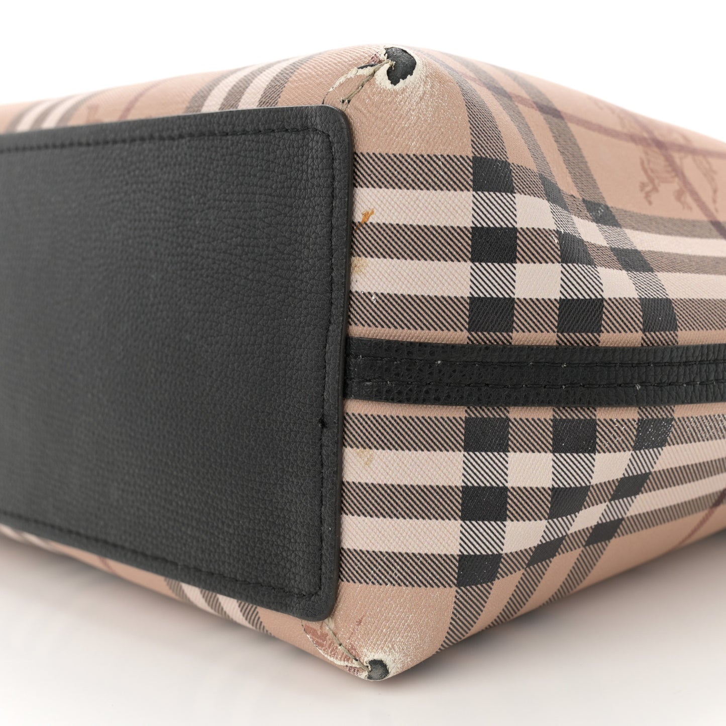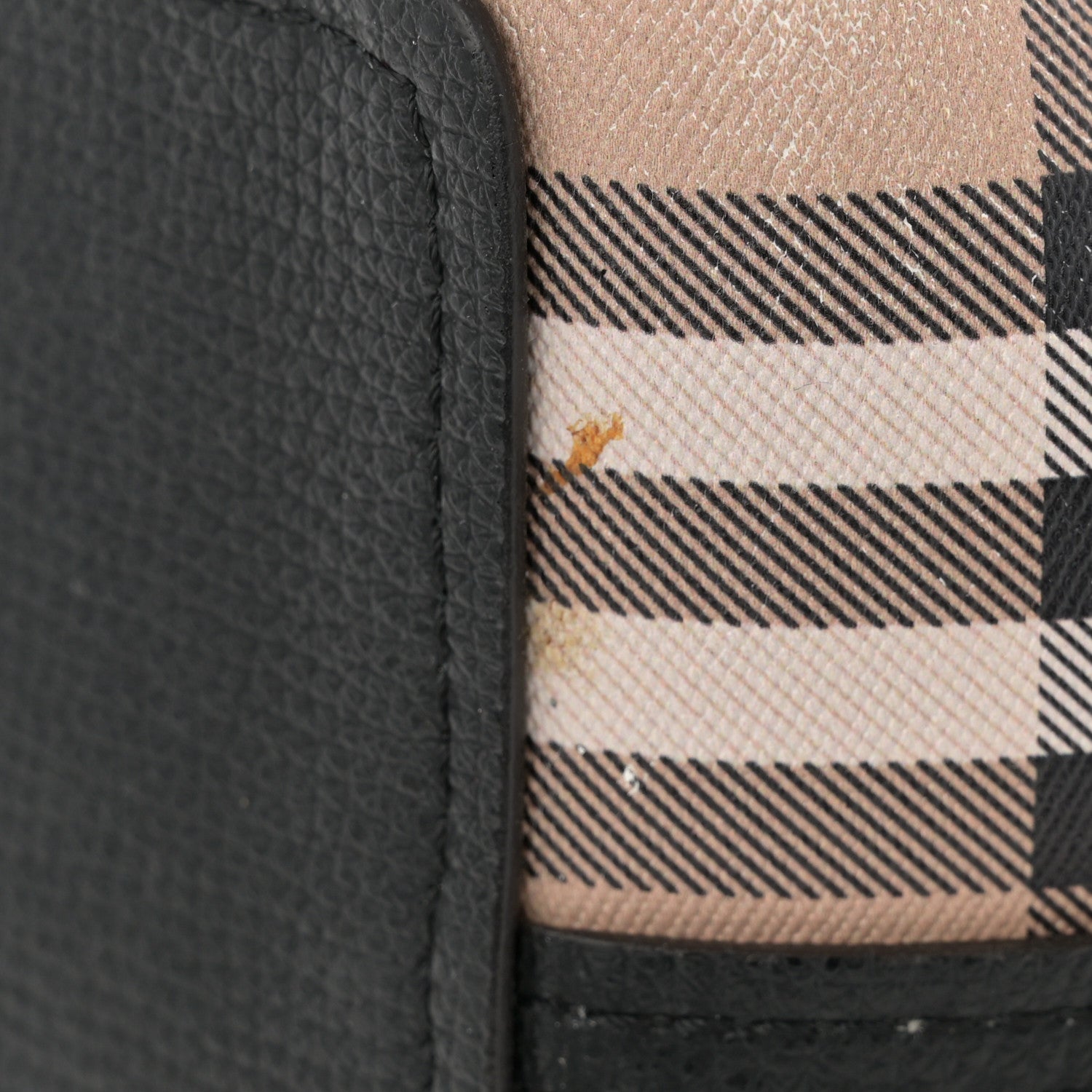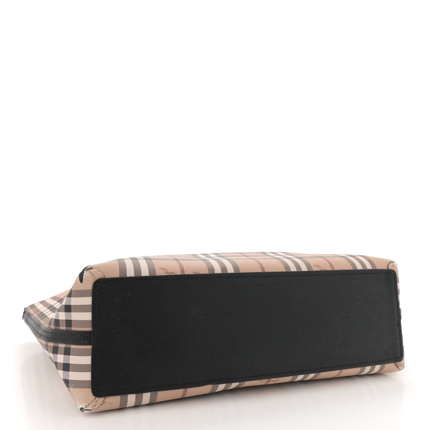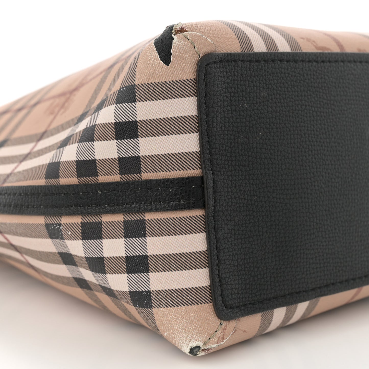 This is an authentic BURBERRY Grainy Calfskin Haymarket Check Medium Reversible Tote in Black. This stylish tote is crafted of grained calfskin leather in black. The bag features matching leather shoulder straps and a removable Burberry logo charm. The top is open to a reversible Burberry Haymarket check coated canvas lining.Follow this item for alerts. Burberry is a registered trademark of Burberry. FASHIONPHILE is not affiliated with Burberry.