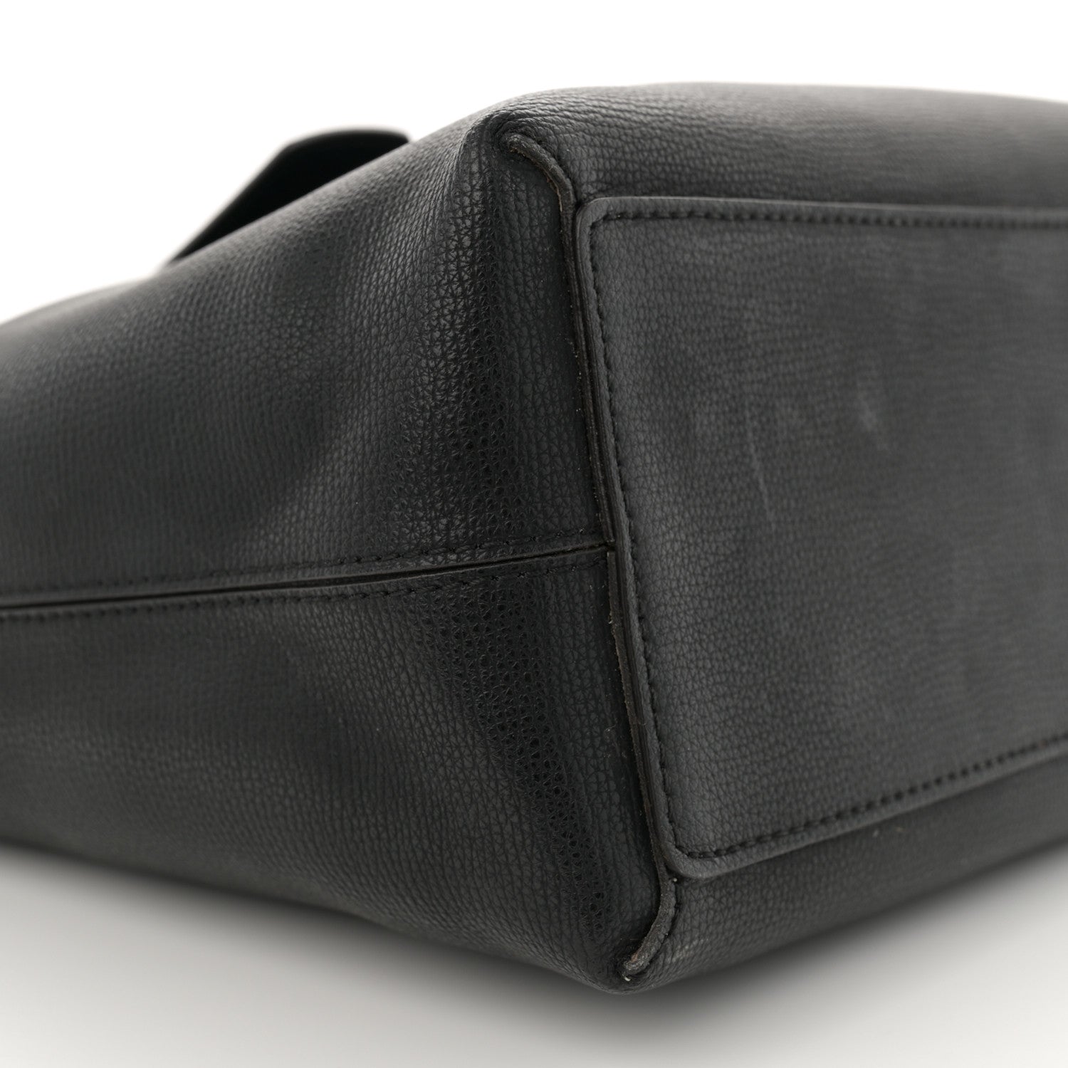 Grainy Calfskin Haymarket Check Medium Reversible Tote Black