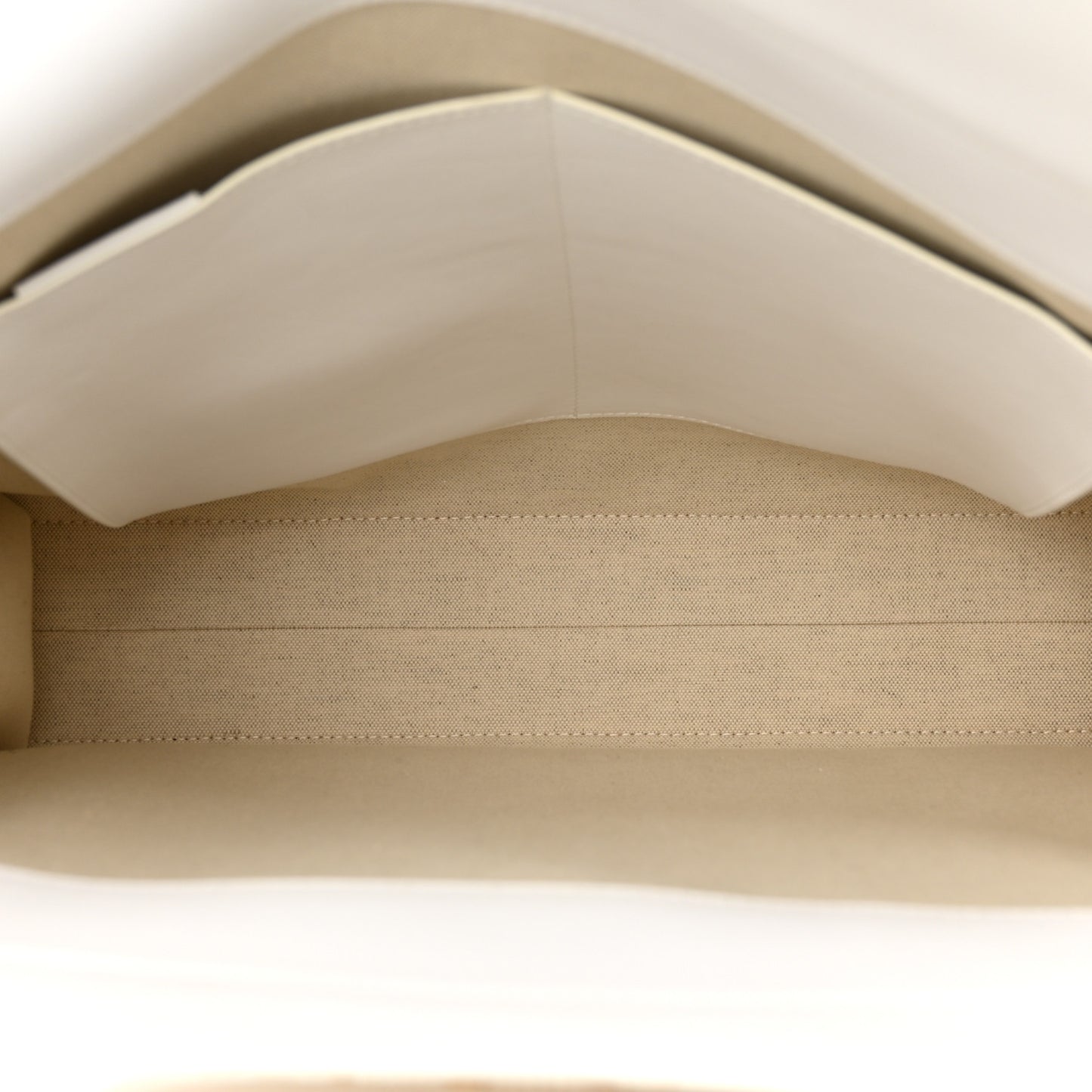 This is an authentic BURBERRY Monogram Canvas Smooth Calfskin Medium Pocket Bag in White and Beige. This stylish tote is crafted of smooth calfskin leather in white. The bag features a front slip pocket with a Burberry logo, cutout handles, an optional adjustable shoulder strap and polished gold hardware. The top is open to a beige fabric interior with a patch pocket.Follow this item for alerts. Burberry is a registered trademark of Burberry. FASHIONPHILE is not affiliated with Burberry.