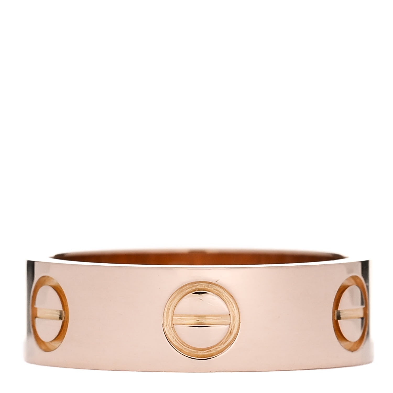 This is an authentic CARTIER 18K Pink Gold 5.5mm LOVE Ring 50 5.25. The ring is crafted of 18 karat pink gold and features the signature engraved LOVE screw symbol motifs throughout the band.Follow this item for alerts. Cartier is a registered trademark of Cartier. FASHIONPHILE is not affiliated with Cartier.