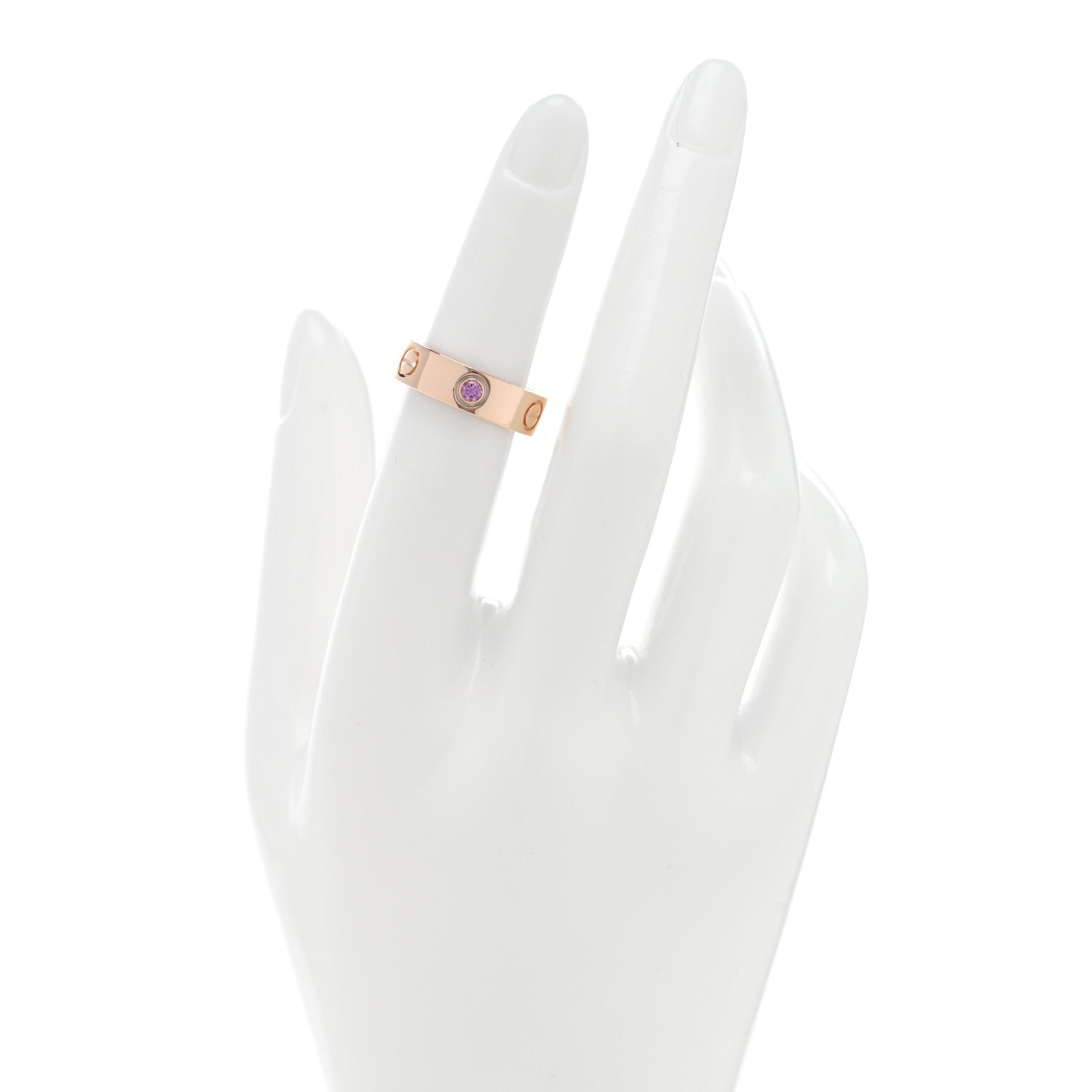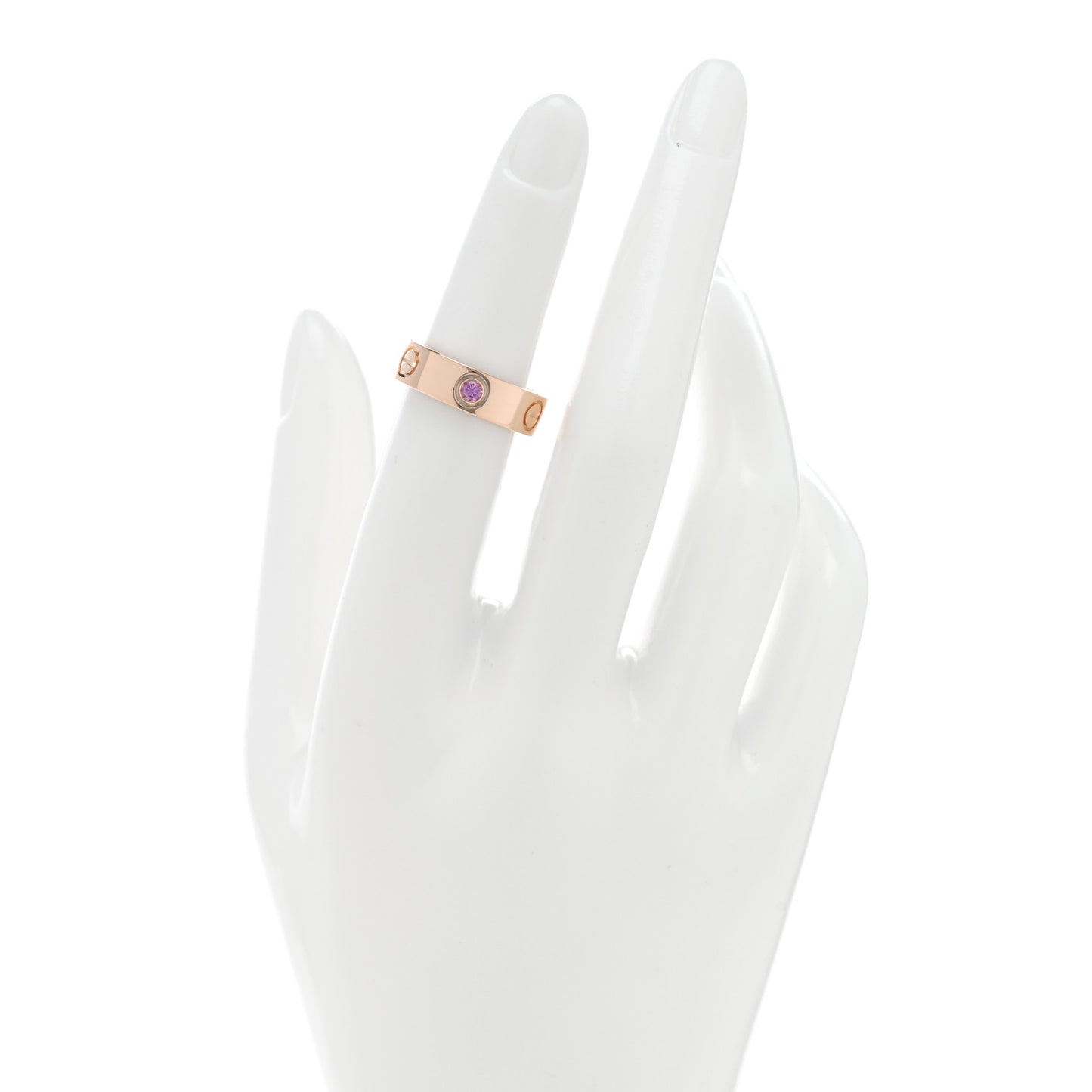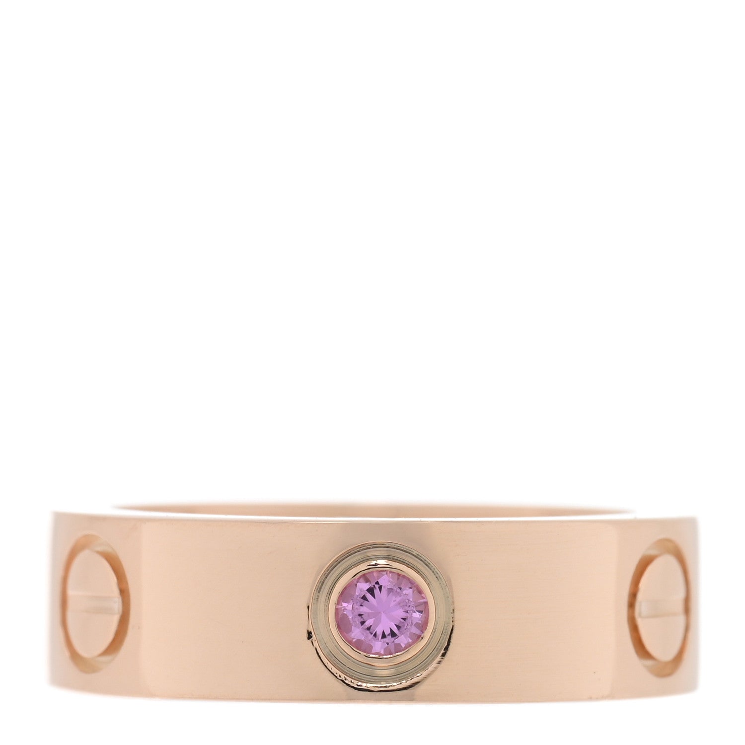 This is an authentic CARTIER 18K Pink Gold Pink Sapphire 5.5mm LOVE Ring 50 5.25. The ring is crafted of 18 karat pink gold and features the iconic screw LOVE symbol motif with a central pink sapphire.Follow this item for alerts. Cartier is a registered trademark of Cartier. FASHIONPHILE is not affiliated with Cartier.