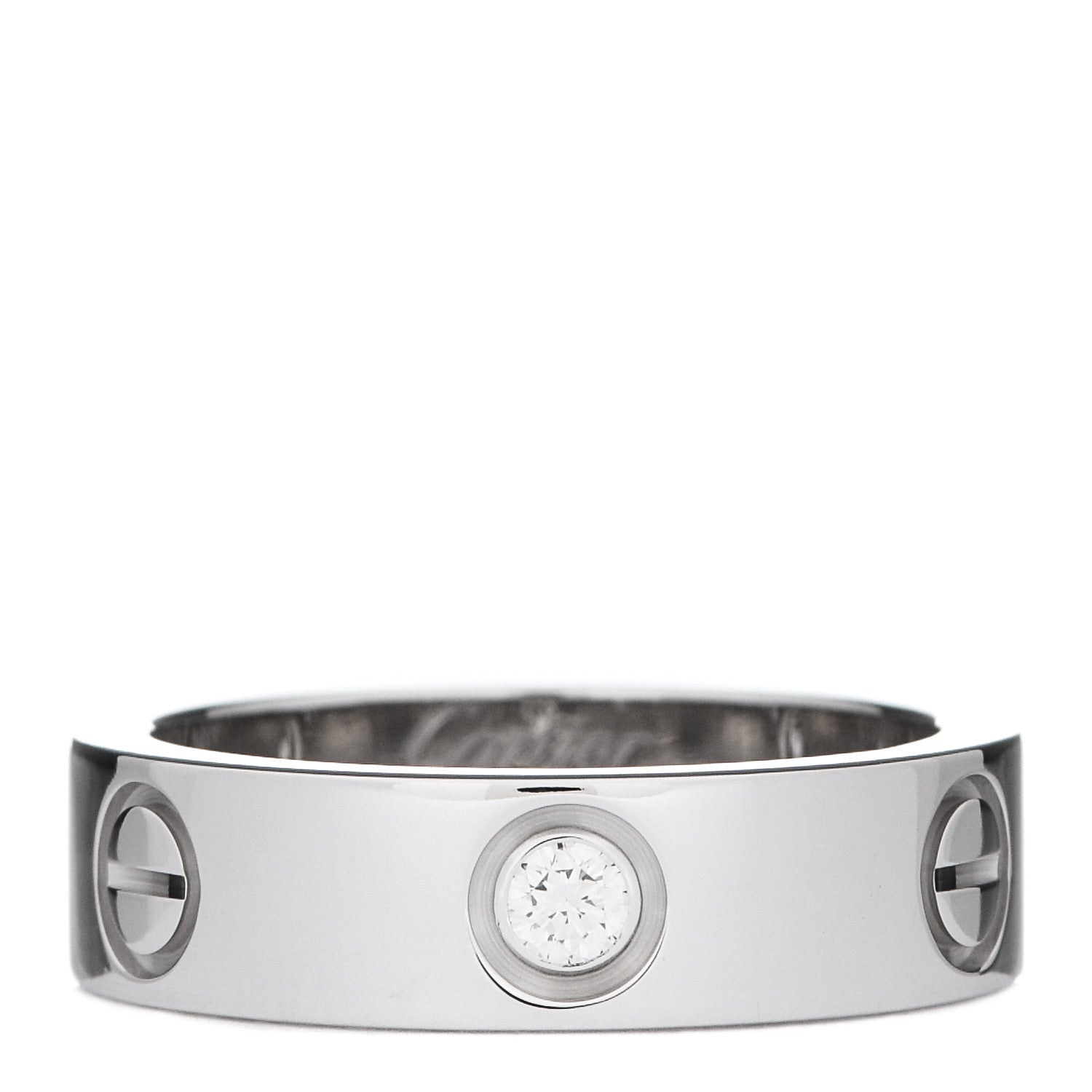 This is an authentic CARTIER 18K White Gold 3 Diamond 5.5mm LOVE Ring size 53 or 6.5. The ring is crafted of 18 karat white gold and features the iconic LOVE symbol motif alternating between three round brilliant cut diamonds weighing approximately .22 total carat weight.Follow this item for alerts. Cartier is a registered trademark of Cartier. FASHIONPHILE is not affiliated with Cartier.