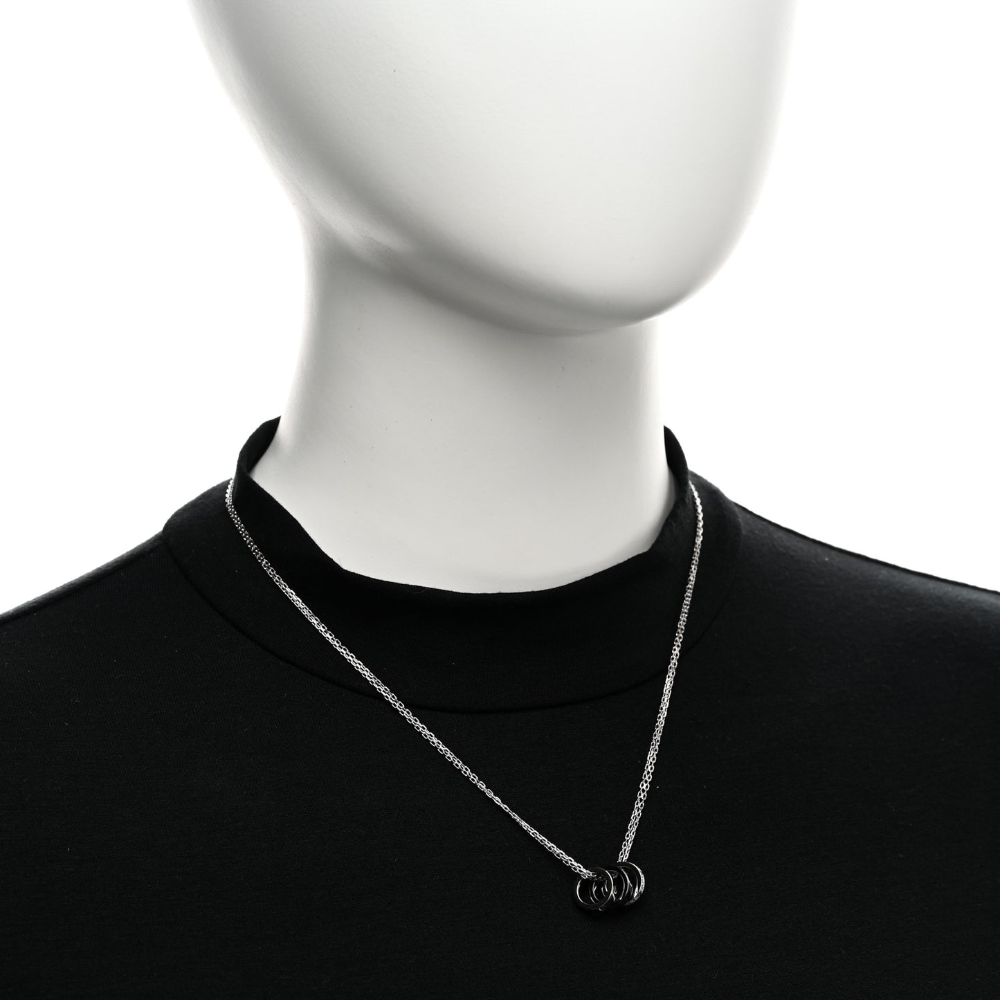 18K White Gold Ceramic Diamond Three Ring LOVE Necklace