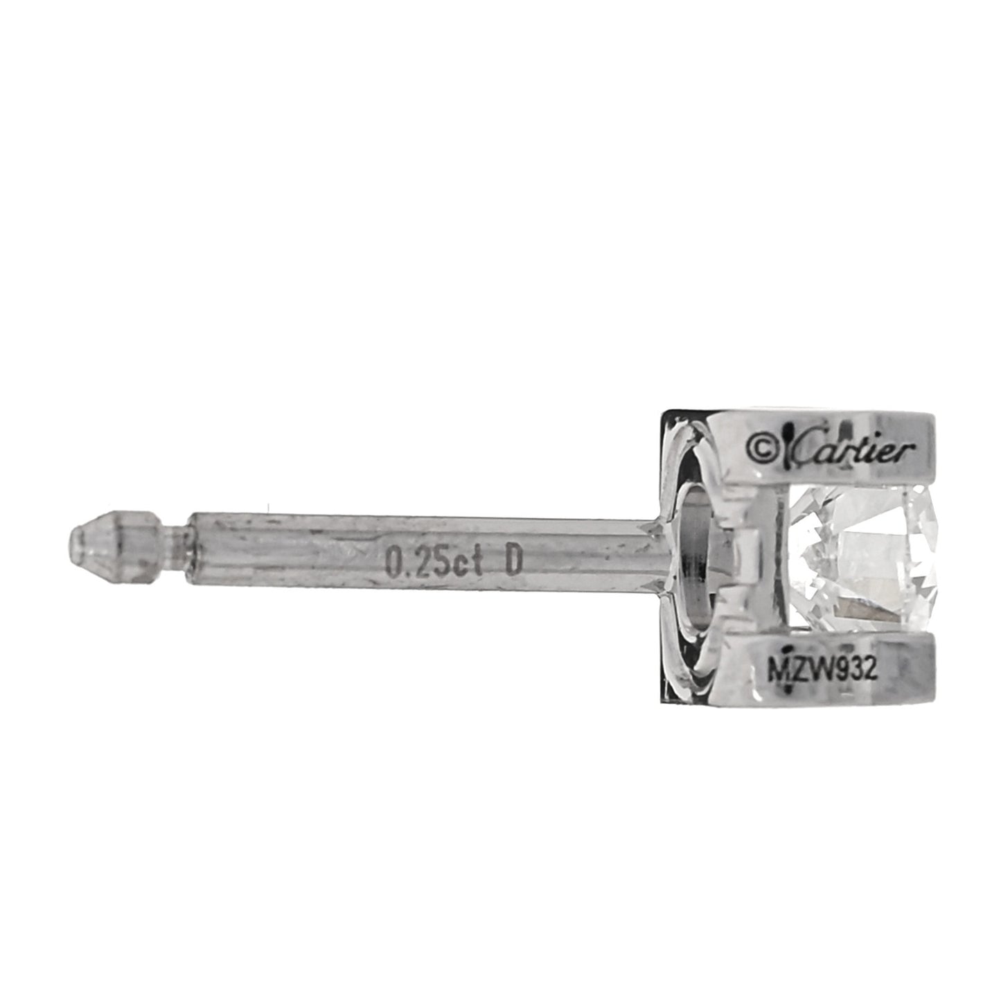 This is an authentic CARTIER 18K White Gold Diamond .49ctw C De Cartier Earrings. The earrings are crafted of 18 karat white gold and feature solitaire round brilliant cut diamonds, approximately .49 total carat weight with E-F color and VVS1-VVS2 clarity.Follow this item for alerts. Cartier is a registered trademark of Cartier. FASHIONPHILE is not affiliated with Cartier.