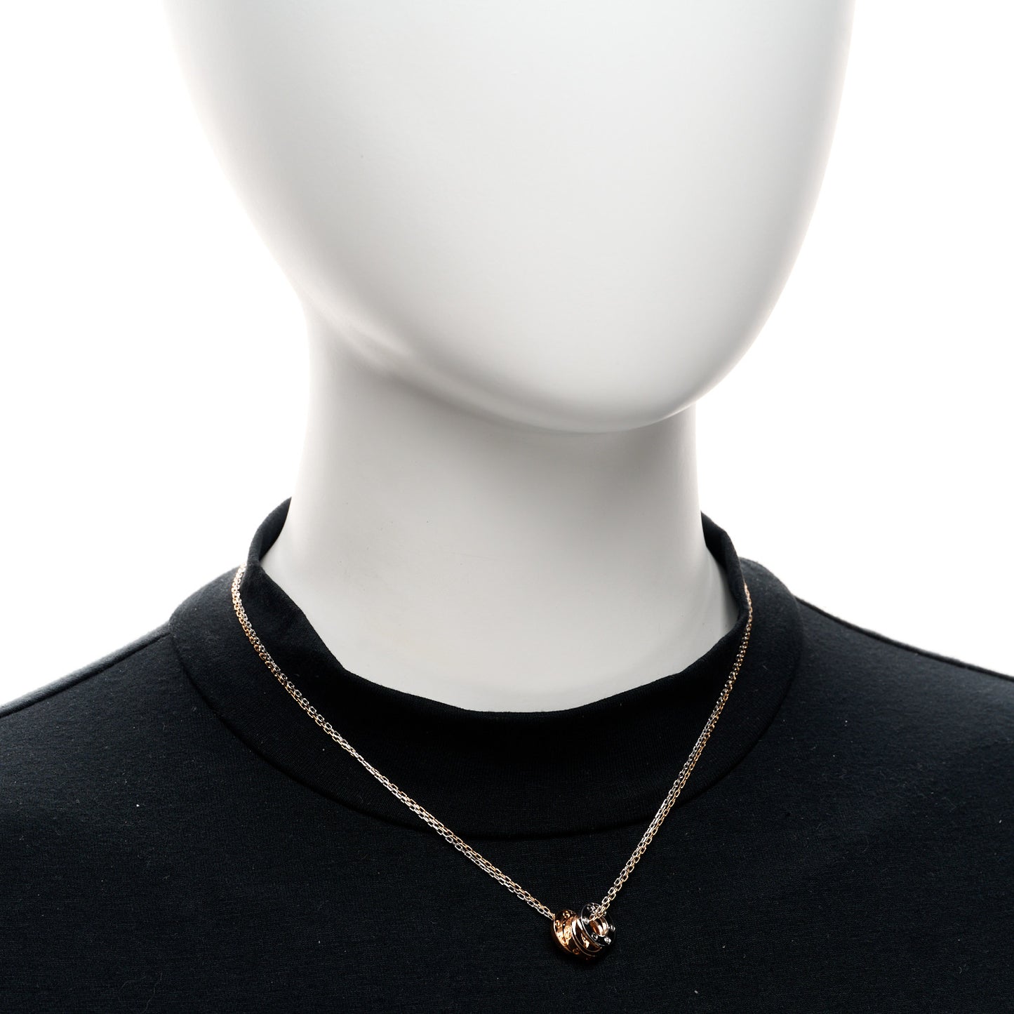 This is an authentic CARTIER 18K White Pink Gold Diamond Three Ring LOVE Pendant Necklace. The necklace is crafted of 18 karat white and pink gold, and features three LOVE ring pendants set with diamonds, approximately .01 total carat weight.Follow this item for alerts. Cartier is a registered trademark of Cartier. FASHIONPHILE is not affiliated with Cartier.