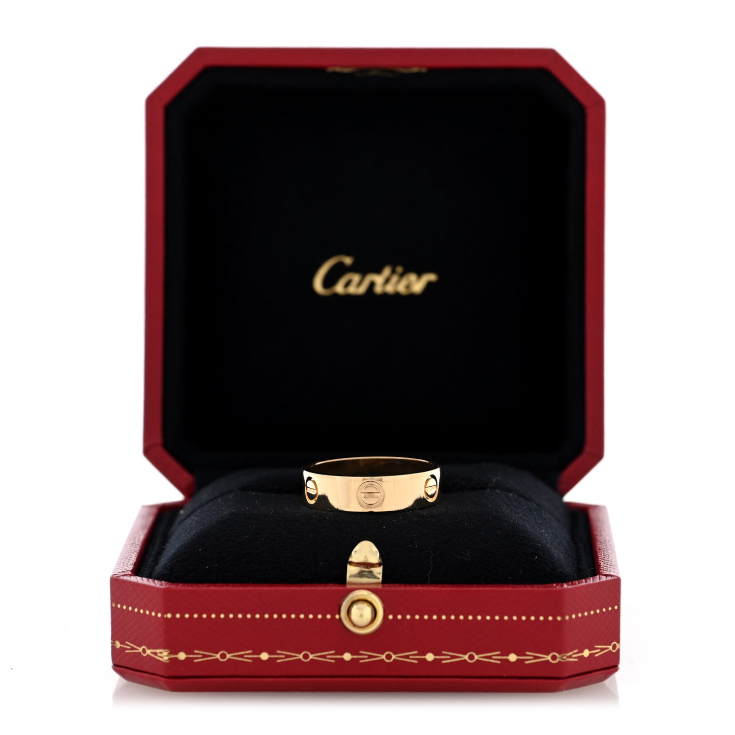 This is an authentic Cartier 18K Yellow Gold 5.5mm LOVE Ring 58 8.5. The ring is crafted of 18 karat yellow gold and features the engraved LOVE symbol motifs throughout the band.Follow this item for alerts. Cartier is a registered trademark of Cartier. FASHIONPHILE is not affiliated with Cartier.