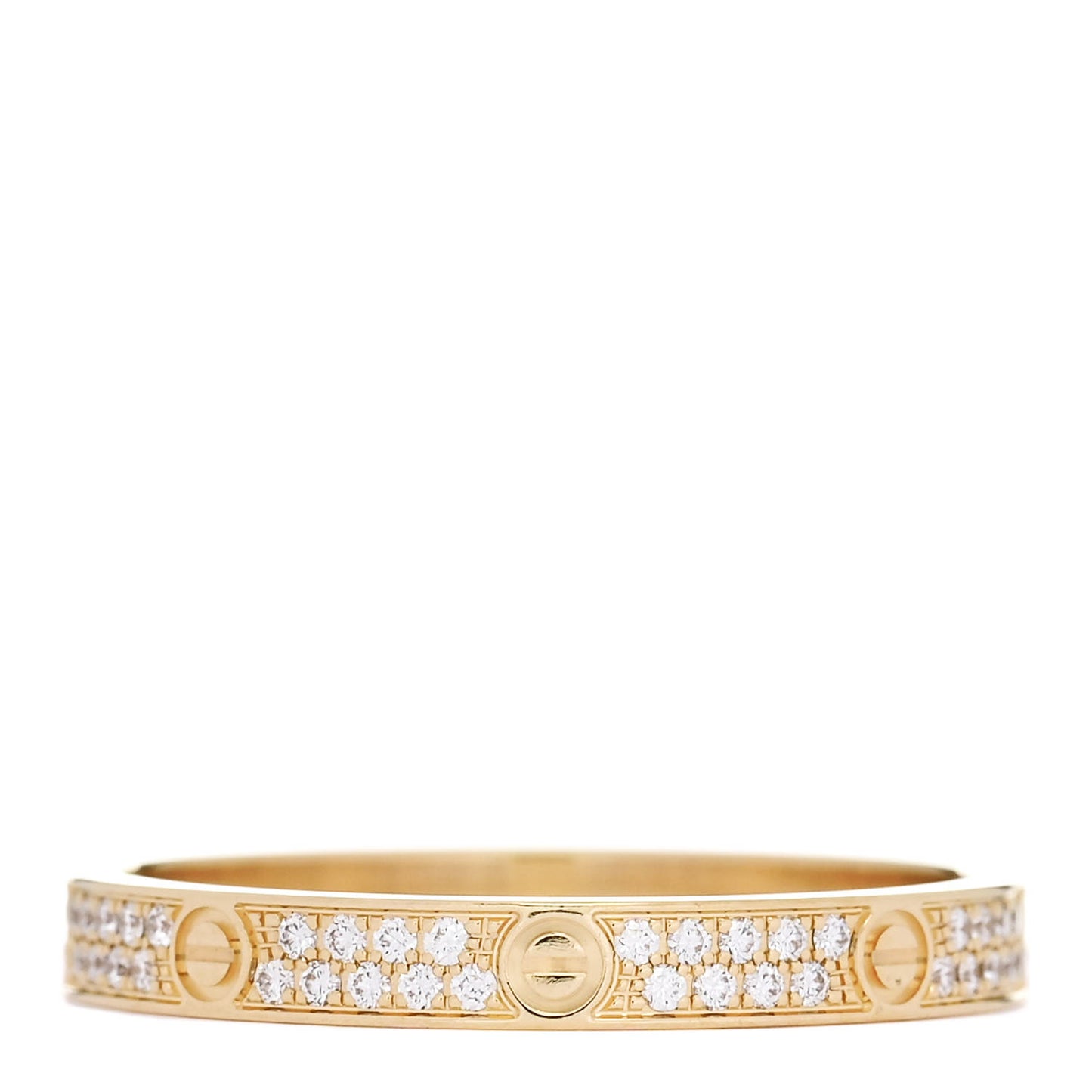 This is an authentic CARTIER 18K Yellow Gold Diamond 2.6mm LOVE Paved Band Ring 54 or 6.75. The ring is crafted of 18 karat yellow gold and features the iconic Cartier LOVE symbol alternating between pave set round brilliant cut diamonds, approximately .19 total carat weight.Follow this item for alerts. Cartier is a registered trademark of Cartier. FASHIONPHILE is not affiliated with Cartier.