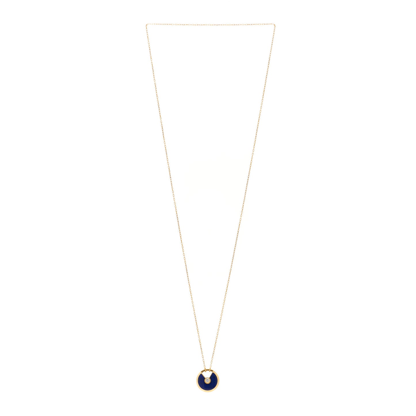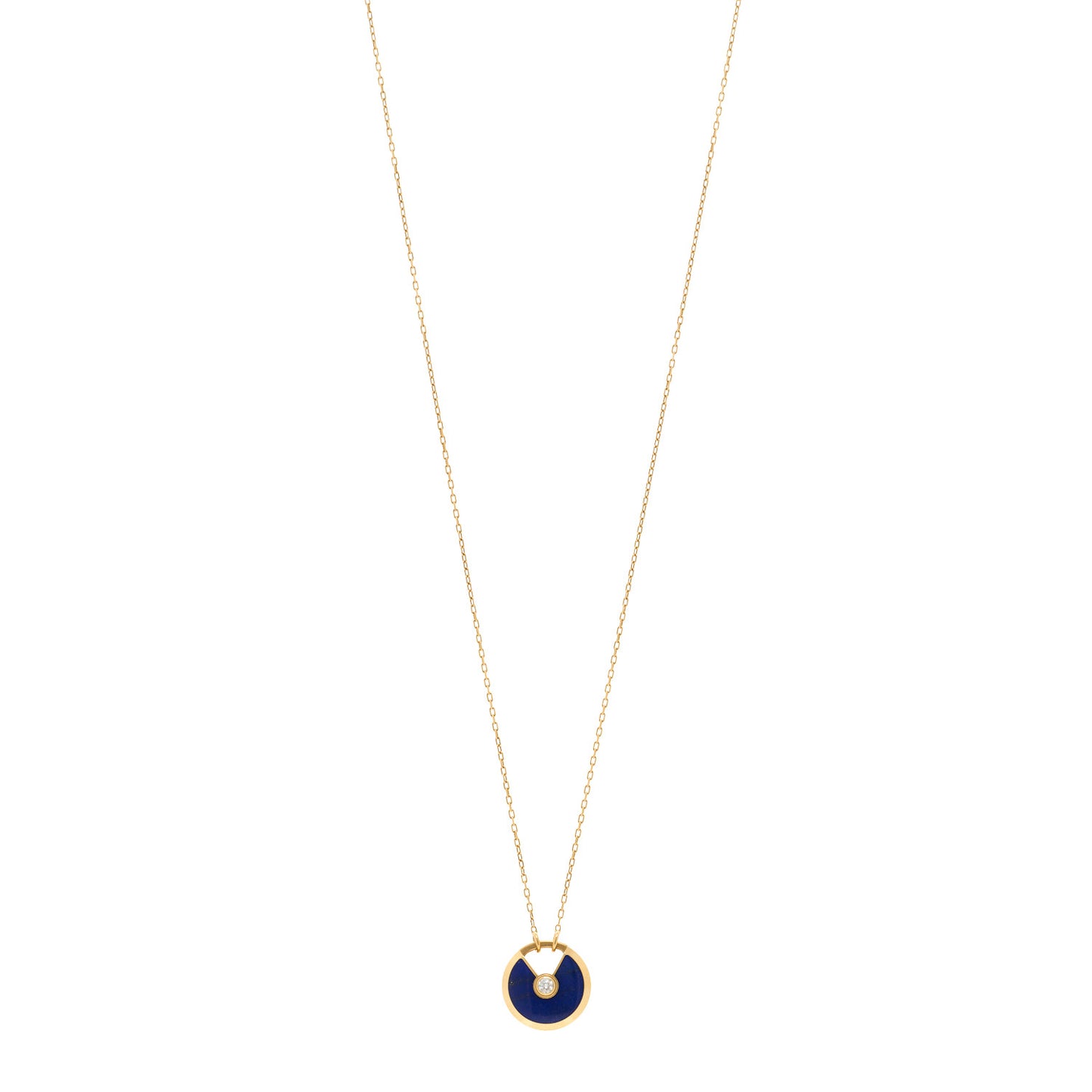 This is an authentic CARTIER 18K Yellow Gold Diamond Lapis Lazuli SM Amulette Pendant Necklace. The necklace is crafted of 18 karat yellow gold and features a round lapis lazuli pendant set with a single diamond approximately .09 carats. PLEASE NOTE: To open this necklace pull up on the amulette bail.Follow this item for alerts. Cartier is a registered trademark of Cartier. FASHIONPHILE is not affiliated with Cartier.