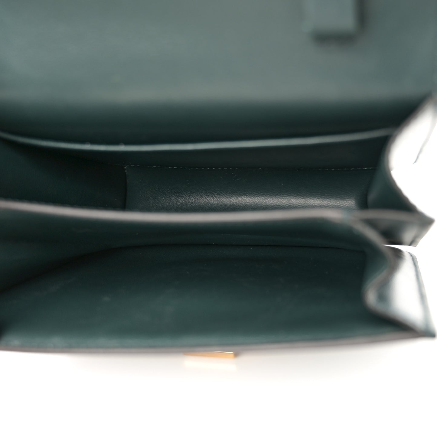 This is an authentic CELINE Box Calfskin Teen Classic Box Flap Bag in Amazone. This chic shoulder bag is crafted of luxuriously smooth dark emerald green box calfskin leather. The bag features a waist-length shoulder strap and a facing flap with a gold switch-lock. The flap opens to a matching green partitioned leather interior with a patch pocket.Follow this item for alerts. Celine is a registered trademark of Celine. FASHIONPHILE is not affiliated with Celine.