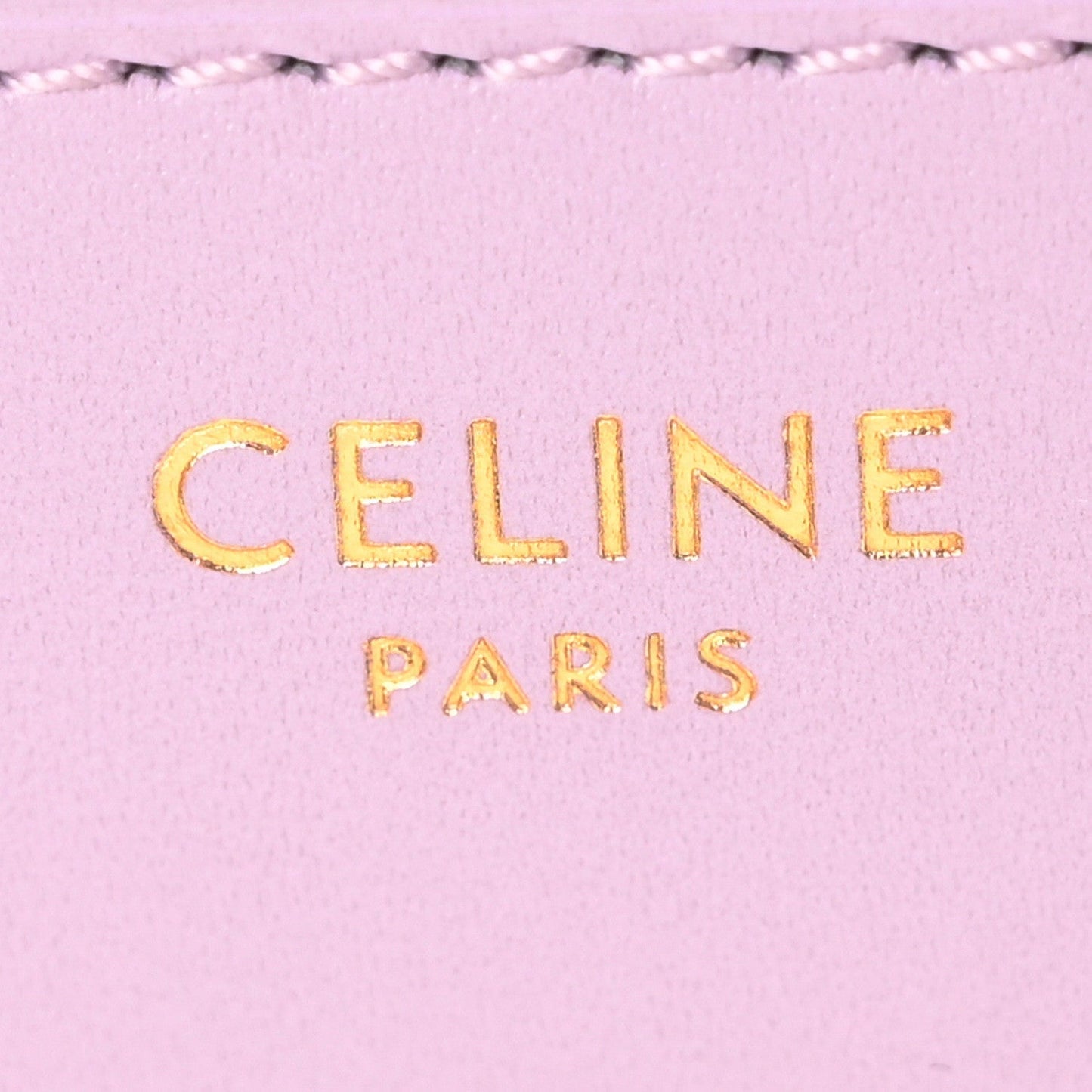 This is an authentic CELINE Box Calfskin Teen Classic Box Flap Bag in Lilas. This chic shoulder bag is crafted of luxuriously smooth purple calfskin leather. The bag features a waist-length shoulder strap and a facing flap with a gold switch-lock. The flap opens to a partitioned leather interior with a pocket.Follow this item for alerts. Celine is a registered trademark of Celine. FASHIONPHILE is not affiliated with Celine.