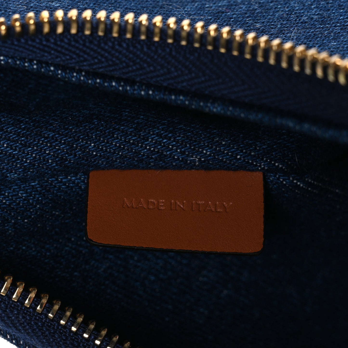 This is an authentic CELINE Denim Ava Shoulder Bag in Navy and Tan. This chic bag is crafted of blue denim with white Celine lettering on the front. The bag features brown leather trim, an adjustable leather strap, and gold hardware. The top zipper opens to a matching fabric interior with a patch pocket.Follow this item for alerts. Celine is a registered trademark of Celine. FASHIONPHILE is not affiliated with Celine.