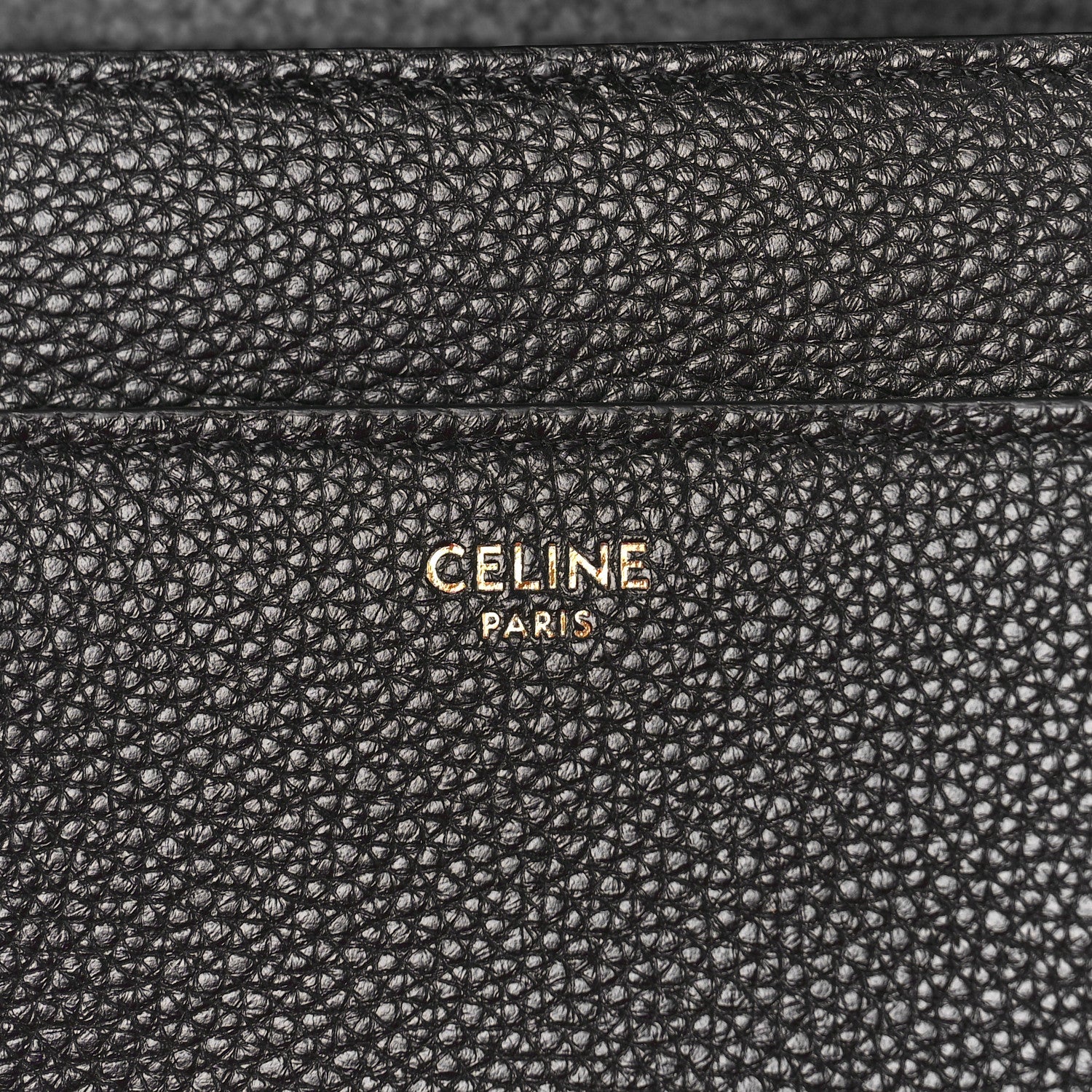 This is an authentic CELINE Grained Calfskin Medium 16 Top Handle Bag in Black. This bag is crafted of grained calfskin leather in black and features a looping leather top handle, an optional shoulder strap, and gold hardware. The crossover flap opens with a turn-lock closure to a partitioned black leather interior with zipper and patch pockets.Follow this item for alerts. Celine is a registered trademark of Celine. FASHIONPHILE is not affiliated with Celine.