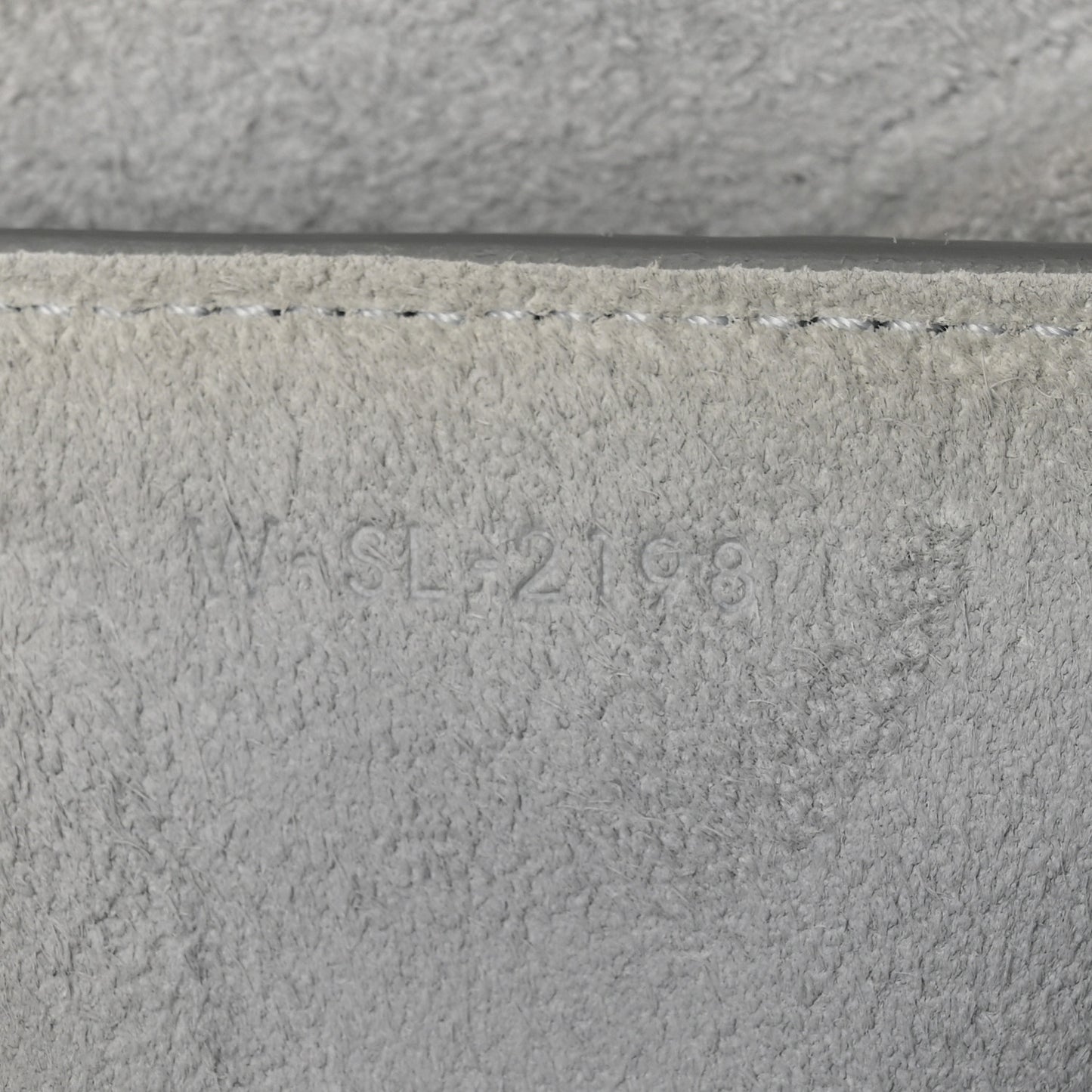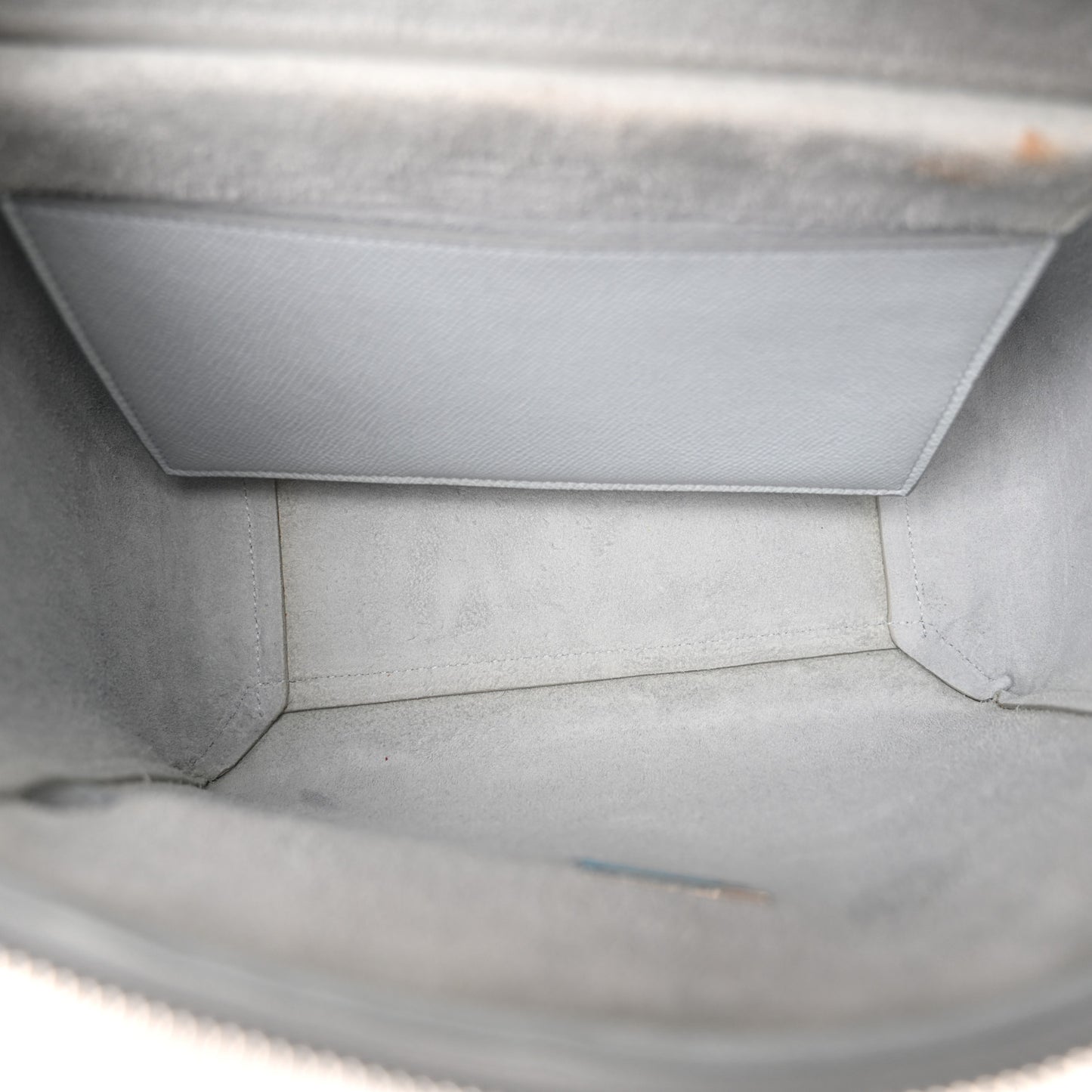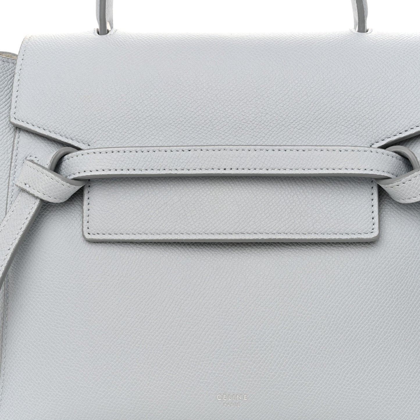 This is an authentic CELINE Grained Calfskin Micro Belt Bag in Mineral. This chic handbag is crafted of rich grained calfskin leather in light grey. This shoulder bag features a leather top handle strap and polished silver clasps. The facing flap opens to a matching suede interior with a hanging pocket.Follow this item for alerts. Celine is a registered trademark of Celine. FASHIONPHILE is not affiliated with Celine.