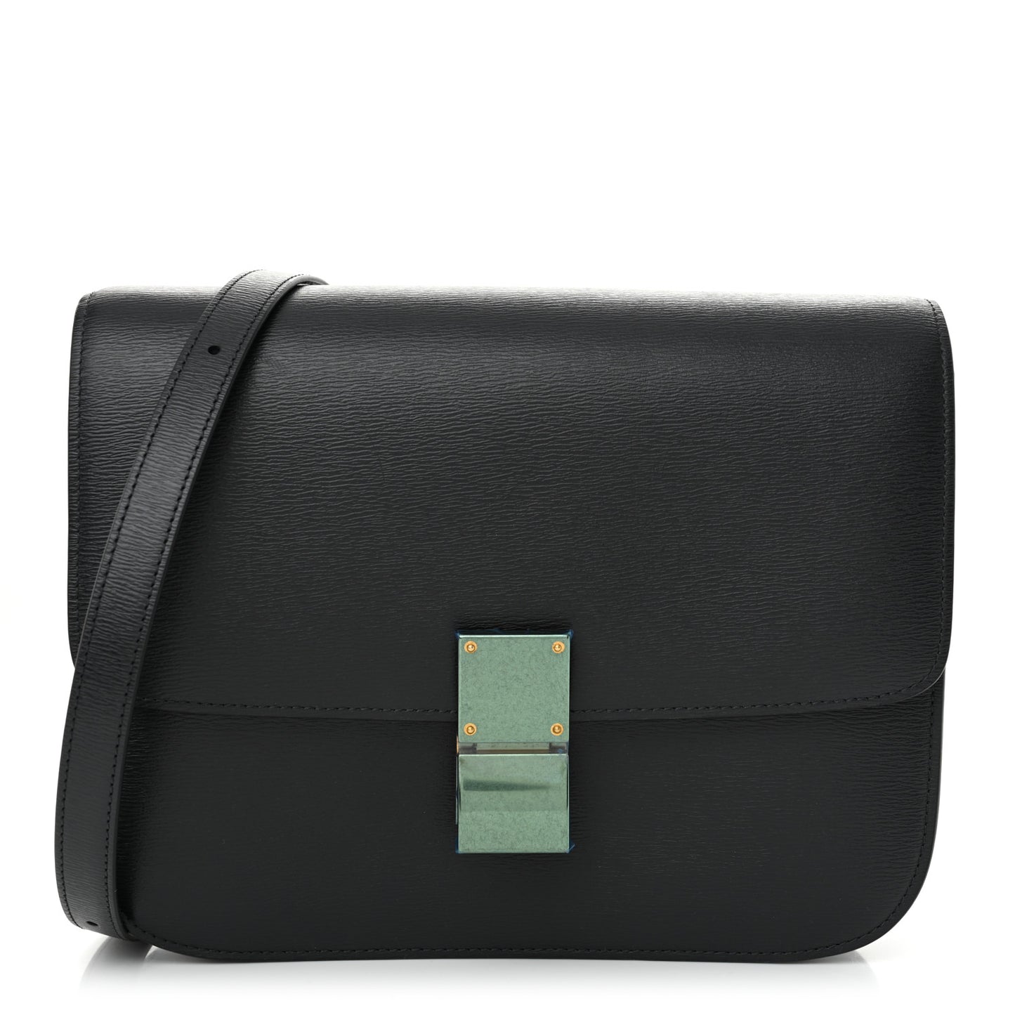 This is an authentic CELINE Liege Calfskin Medium Classic Box Flap Bag in Anthracite. This super-chic shoulder bag is crafted of fine-textured calfskin leather in dark grey. The shoulder bag features an adjustable leather shoulder strap and a frontal gold press lock. This opens the flap to a partitioned matte grey leather interior with a zipper compartment and patch pockets.Follow this item for alerts. Celine is a registered trademark of Celine. FASHIONPHILE is not affiliated with Celine.