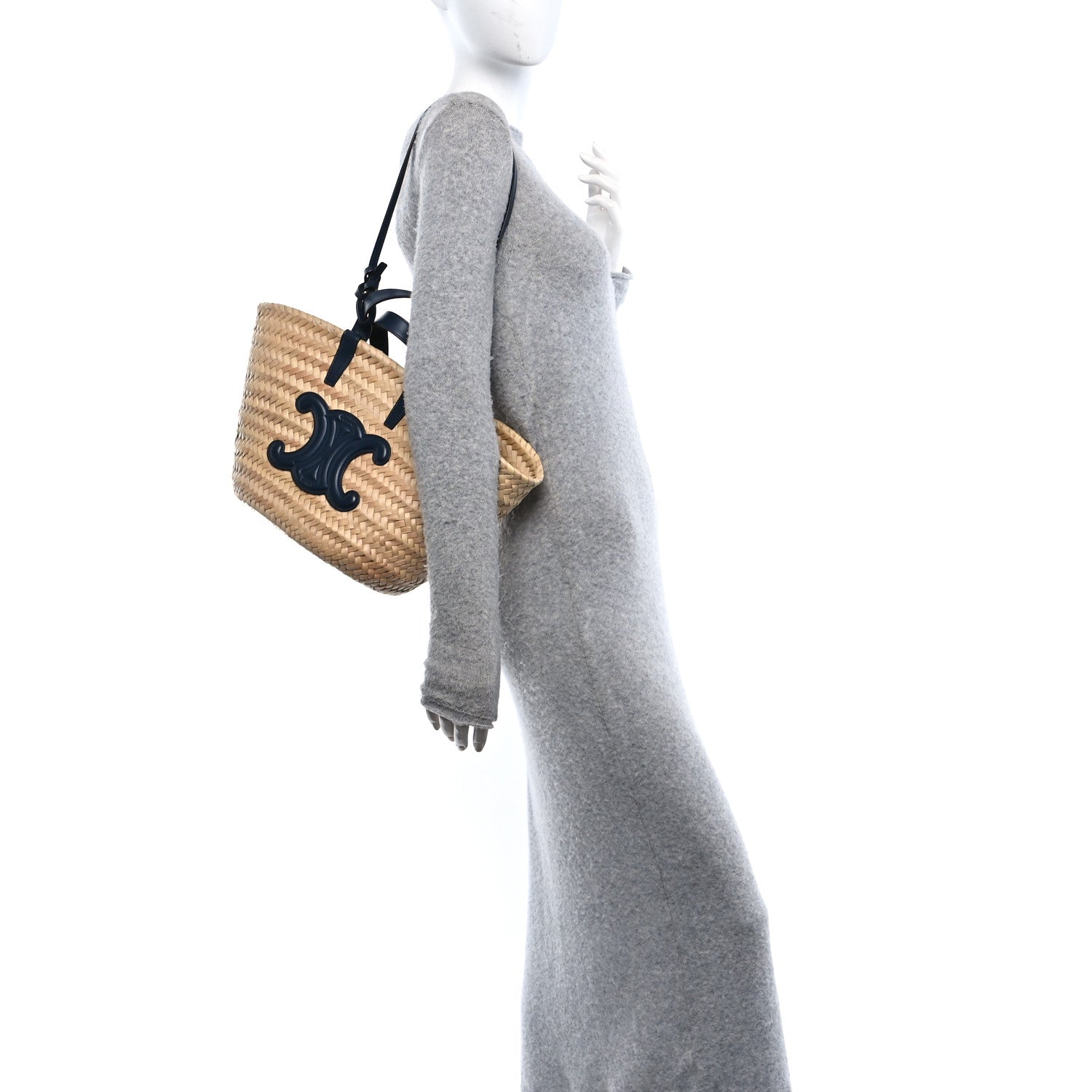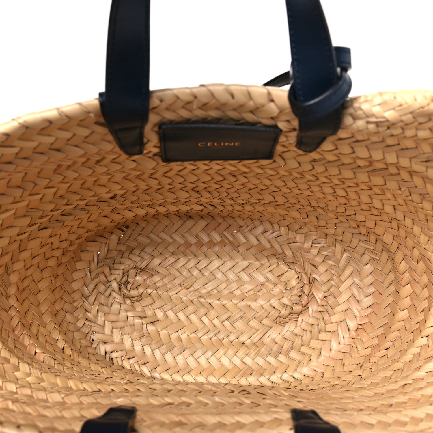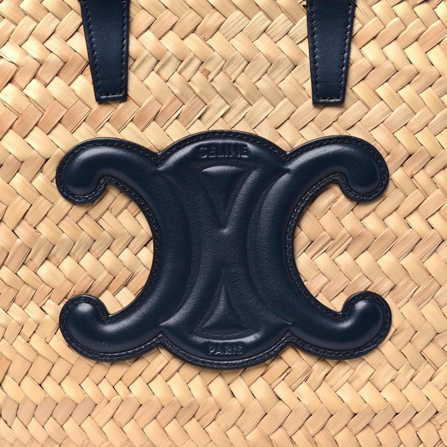 Celine/ Bags/ Shoulder Bags /Celine Raffia Calfskin Triomphe Teen Panier Navy Blue