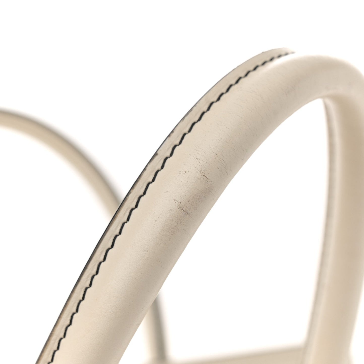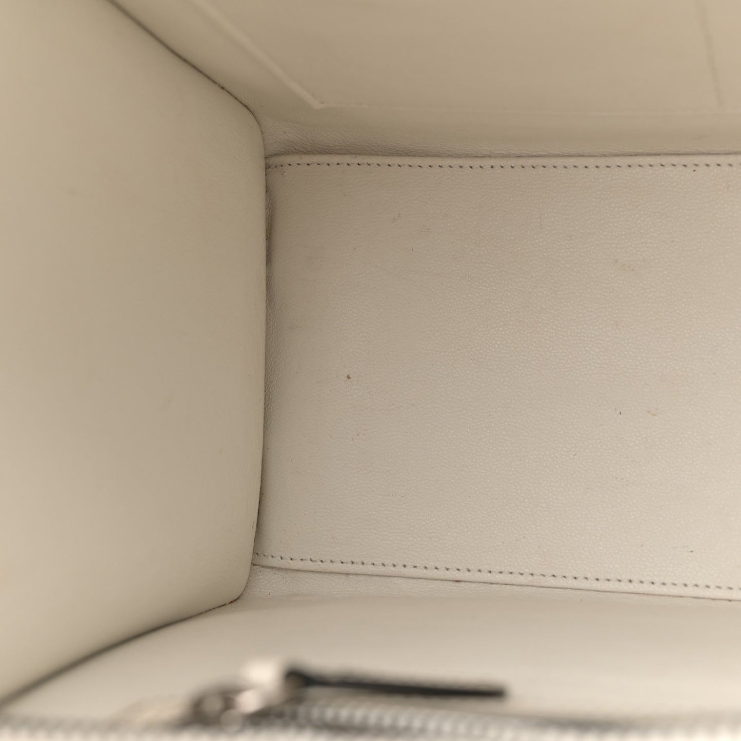 This is an authentic CELINE Satin Calfskin Micro Debossed Luggage Tote in White. This sophisticated and popular tote is crafted of beautiful satiny soft leather in white with black resin glazing. The bag features rolled leather top handles, expandable sides, a frontal zipper pocket and decorative leather trim. The top zipper opens to a matching leather interior with zipper and patch pockets. This is a stunning tote for every day, from Celine!Follow this item for alerts. Celine is a registered trademark of Celine. FASHIONPHILE is not affiliated with Celine.