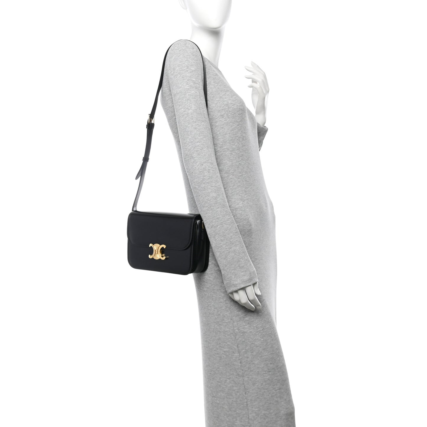 Celine/ Bags/ Shoulder Bags /Celine Shiny Calfskin Medium Triomphe Black