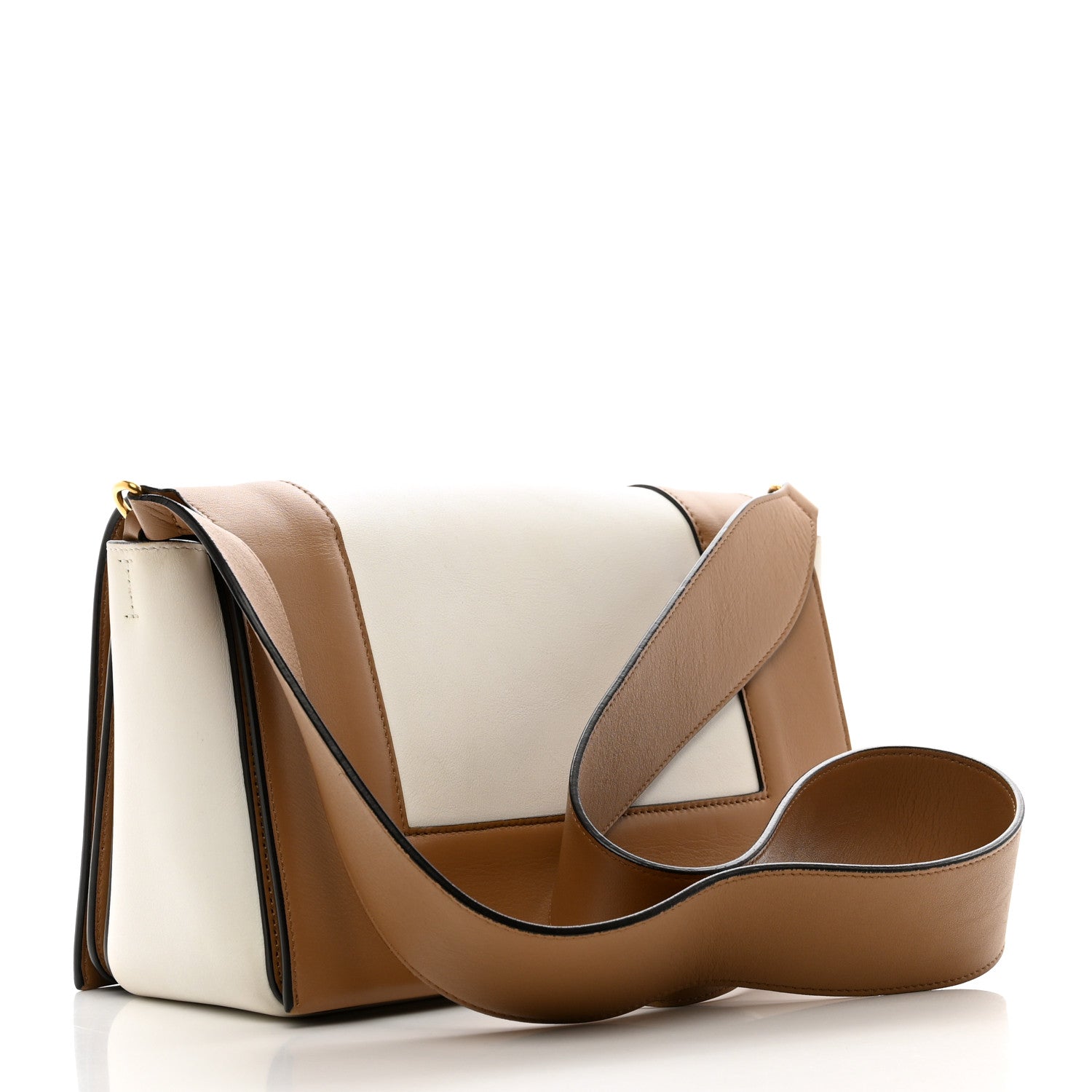 Celine/ Bags/ Shoulder Bags /Celine Shiny Smooth Calfskin Medium Frame Shoulder Bag Tan Optic White