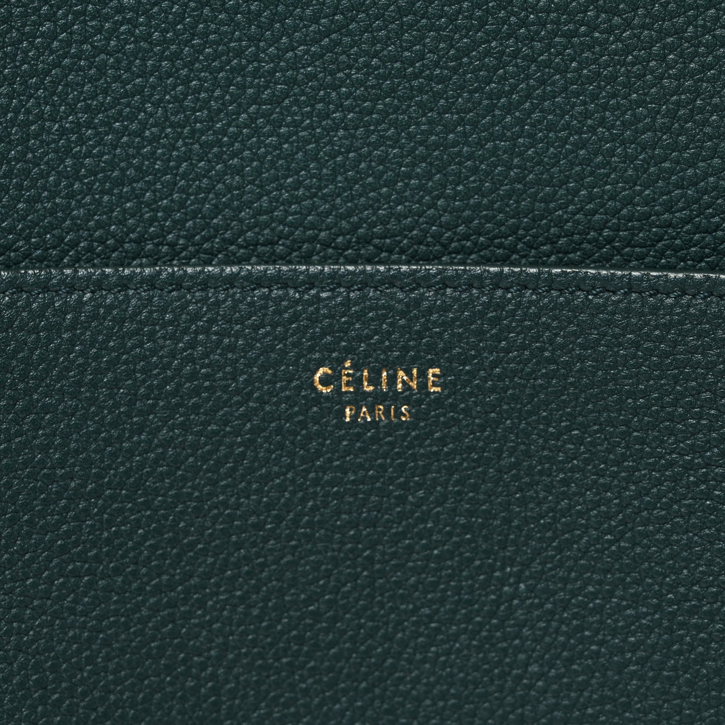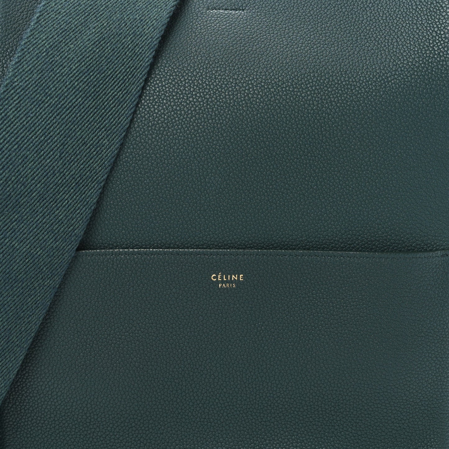 This is an authentic CELINE Soft Grained Calfskin Sangle Bucket Bag in Amazone. This chic shoulder bag is crafted of richly grained calfskin leather in dark green. This stylish bag features a canvas shoulder strap with polished gold clasps and a horizontal rim around the center of the bag to form a patch pocket on each side of the bag. The top is open to a matching suede leather interior with a zipper and pocket.Follow this item for alerts. Celine is a registered trademark of Celine. FASHIONPHILE is not affiliated with Celine.