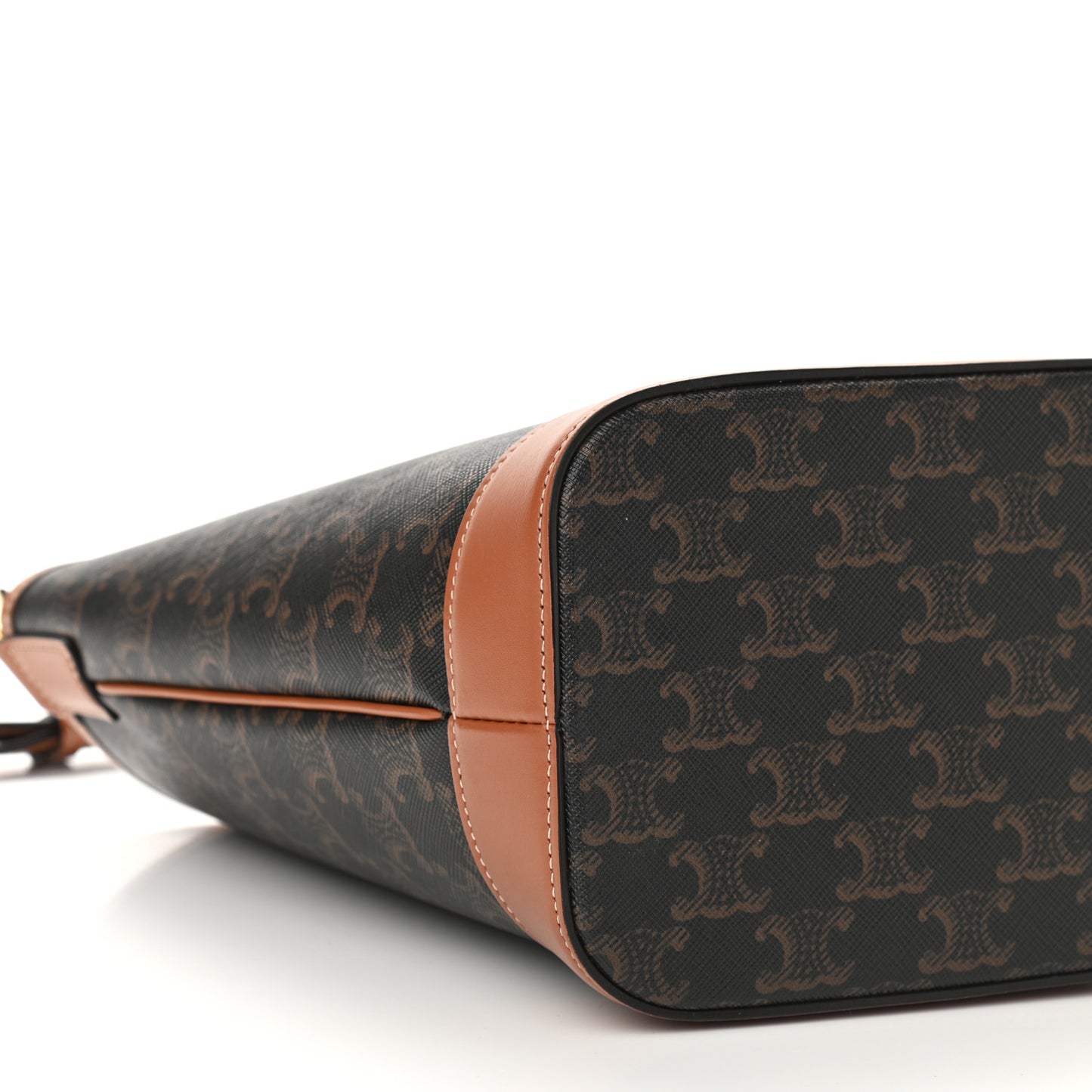 Celine/ Bags/ Shoulder Bags /Celine Triomphe Canvas Calfskin Small Bucket Bag Tan