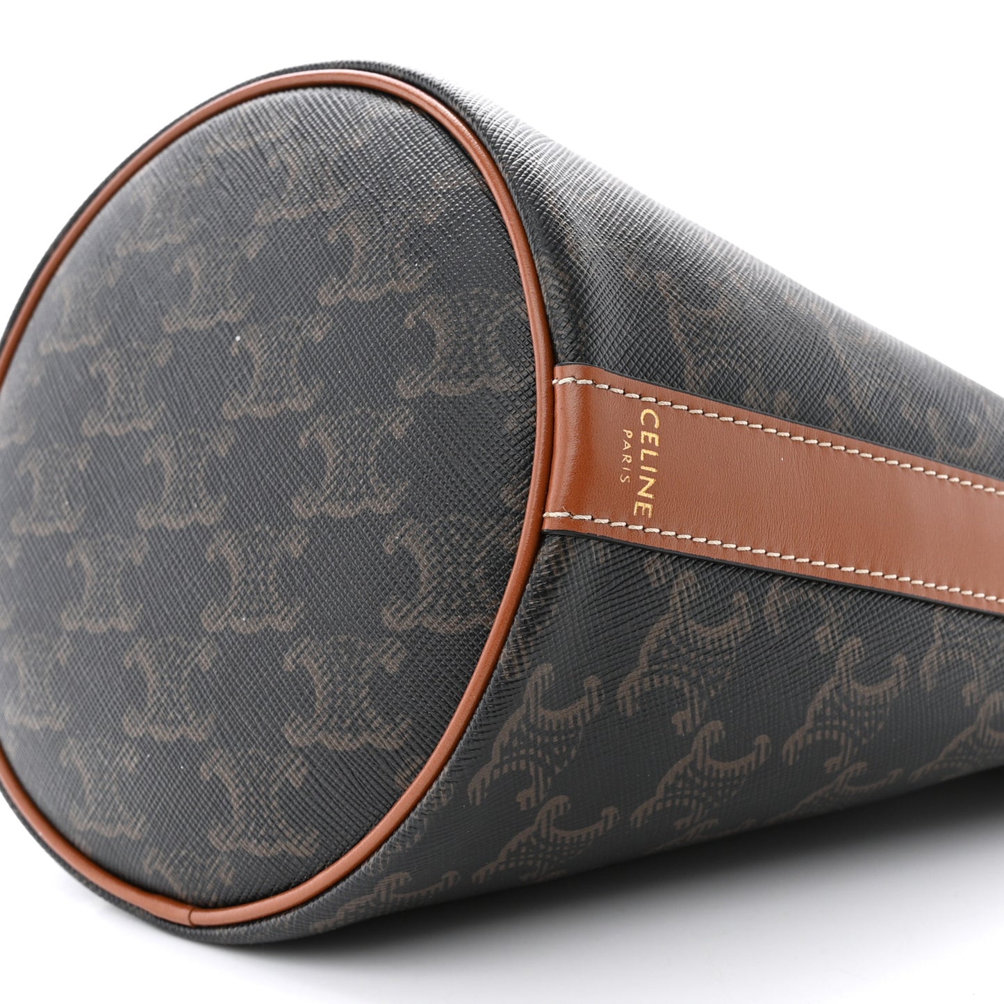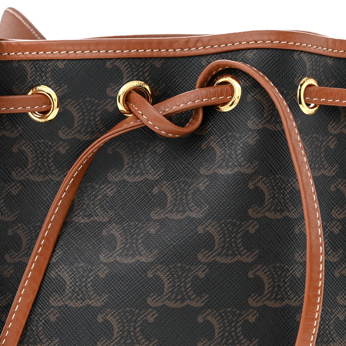 Celine/ Bags/ Shoulder Bags /Celine Triomphe Canvas Calfskin Small Drawstring Bucket Bag Tan