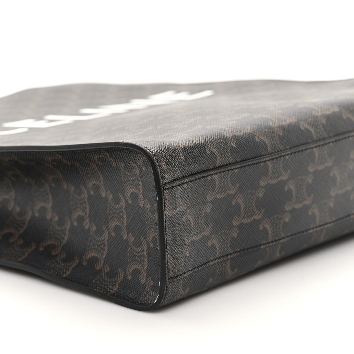 This is an authentic CELINE Triomphe Canvas Calfskin Small Vertical in Cabas Tan. This sleek tote is beautifully crafted of coated canvas with golden brown leather trim. The bag features brown rolled leather top handles, an optional shoulder strap, and a white Celine logo on the front. The top is open to a brown fabric interior with a zipper pocket.Follow this item for alerts. Celine is a registered trademark of Celine. FASHIONPHILE is not affiliated with Celine.
