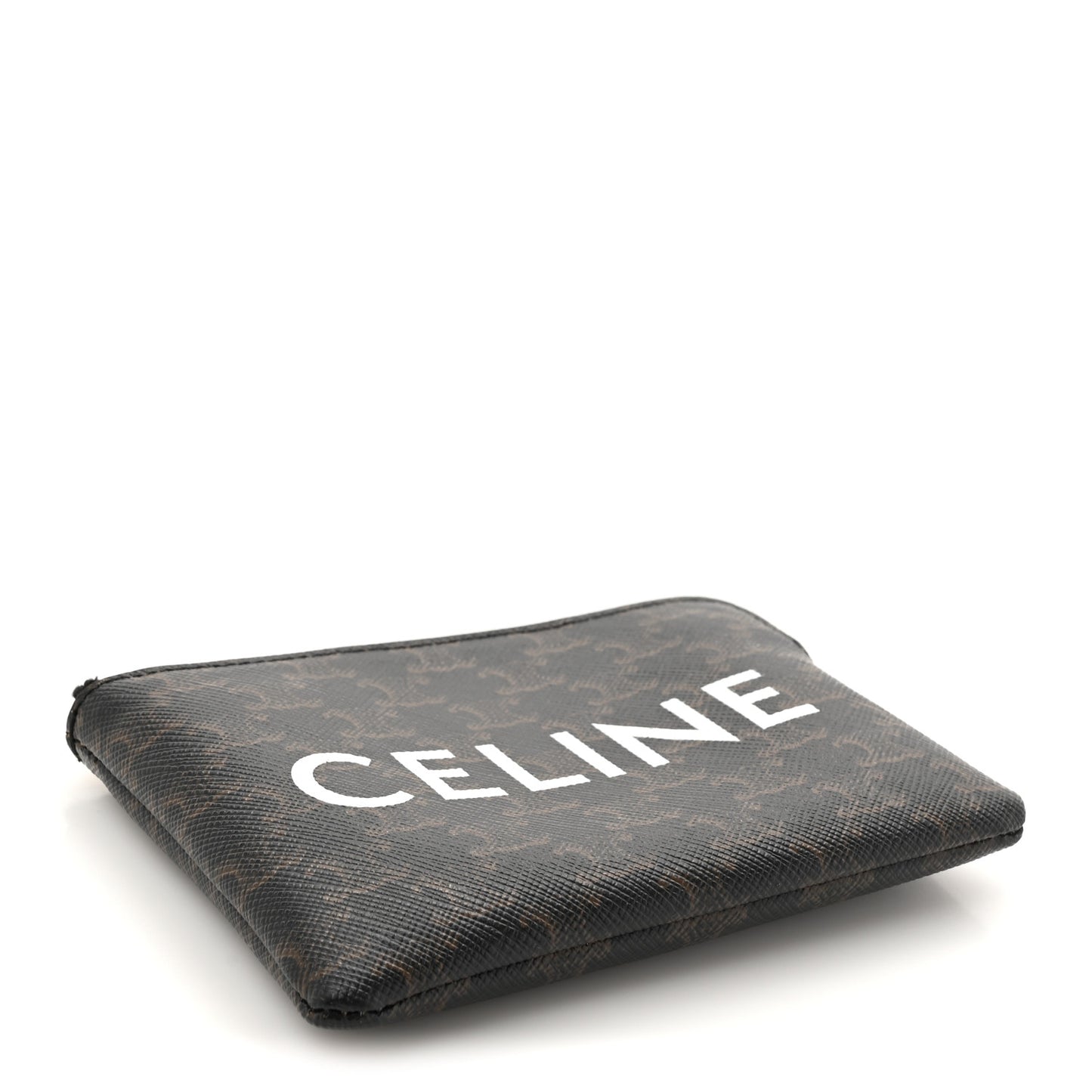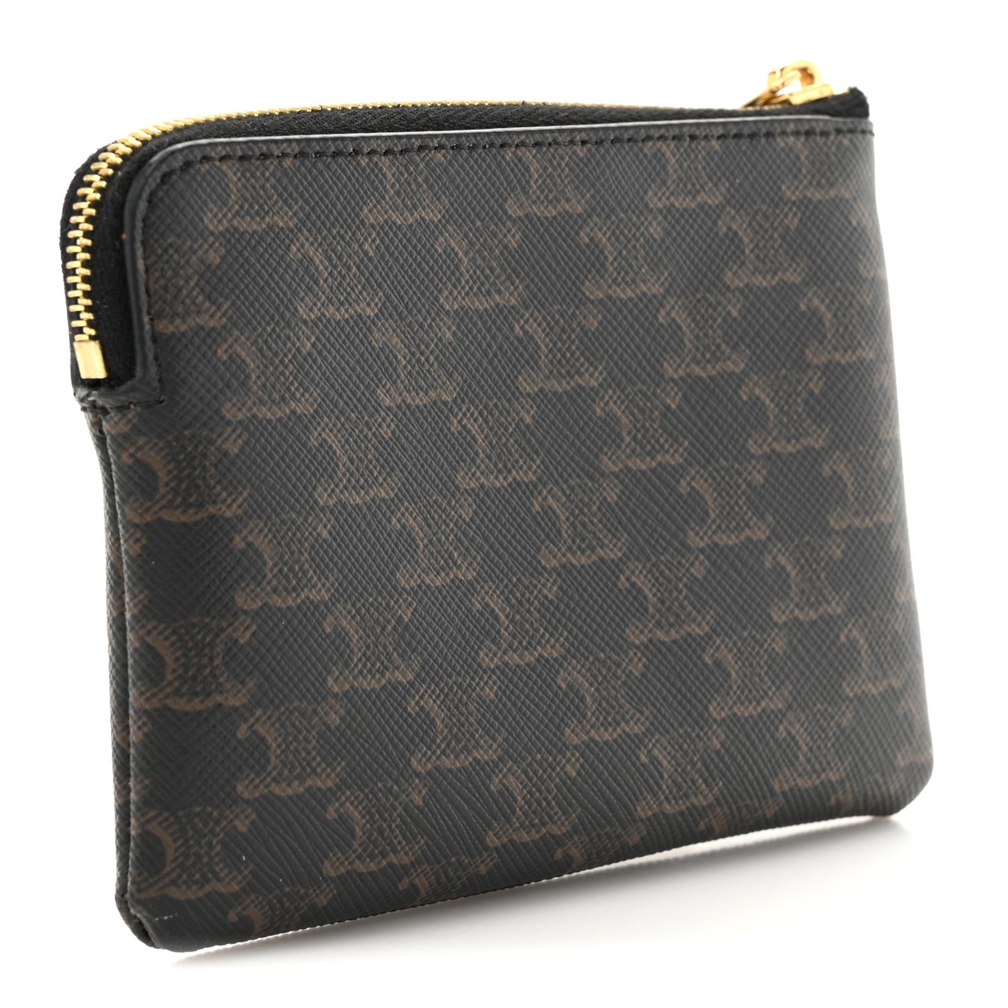 This is an authentic CELINE Triomphe Canvas Coin and Card Pouch With Hook in Black. This coin pouch is crafted of textured coated canvas in black. This case features the Celine logo and a polished gold top zipper that opens to a tan fabric interior.Follow this item for alerts. Celine is a registered trademark of Celine. FASHIONPHILE is not affiliated with Celine.