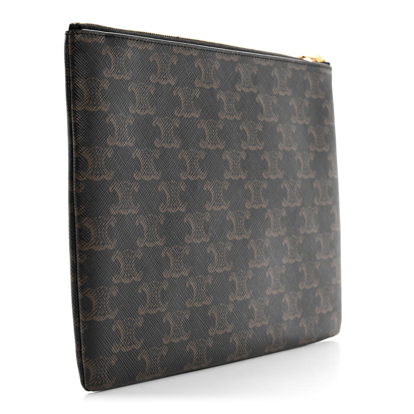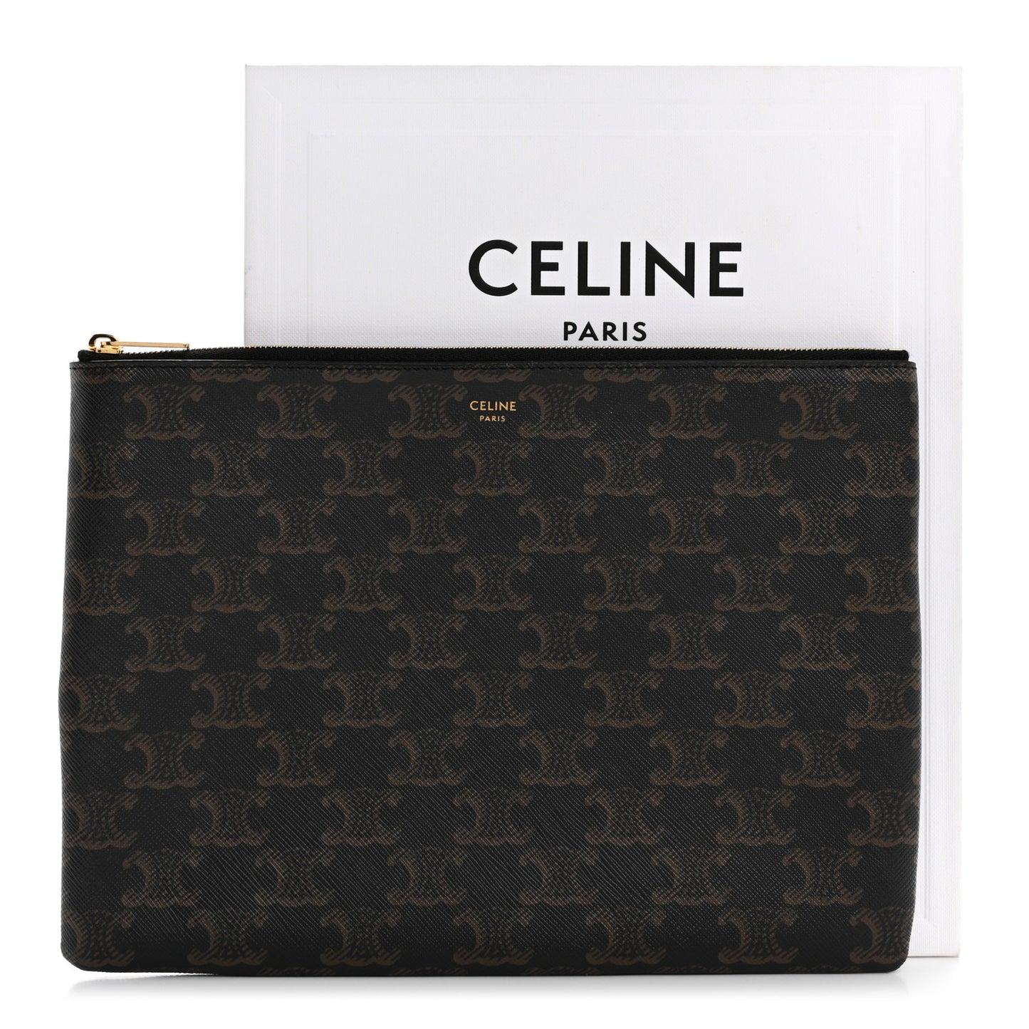 This is an authentic CELINE Triomphe Canvas Pouch in Black. This pouch is crafted of black and brown coated canvas and features a top zipper that opens to a brown fabric interior.Follow this item for alerts. Celine is a registered trademark of Celine. FASHIONPHILE is not affiliated with Celine.