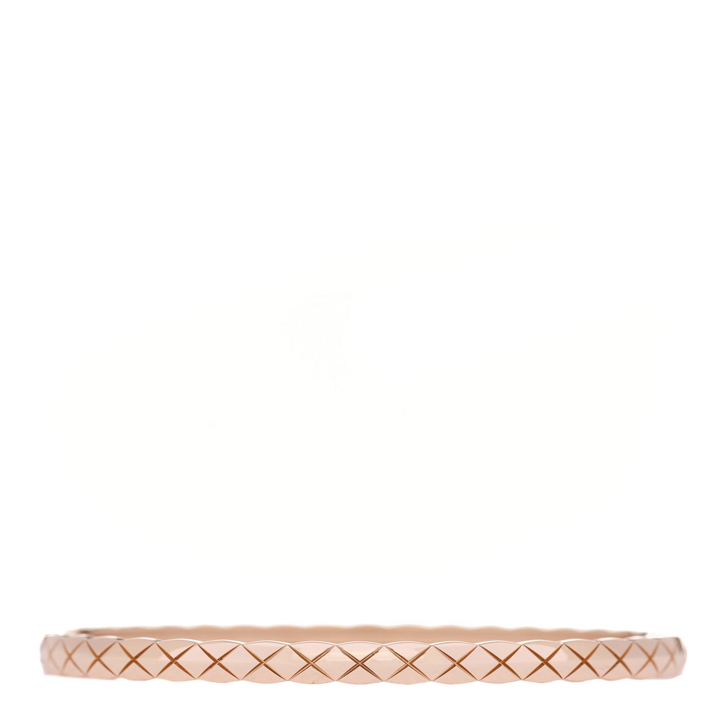 This is an authentic CHANEL 18K Beige Gold Coco Crush Bangle Bracelet S. The bracelet is crafted of 18 karat beige gold and features a hinged band adorned with the signature quilted motif throughout the bangle.Follow this item for alerts. Chanel is a registered trademark of Chanel. FASHIONPHILE is not affiliated with Chanel.