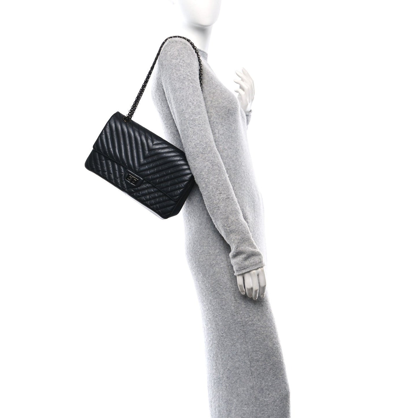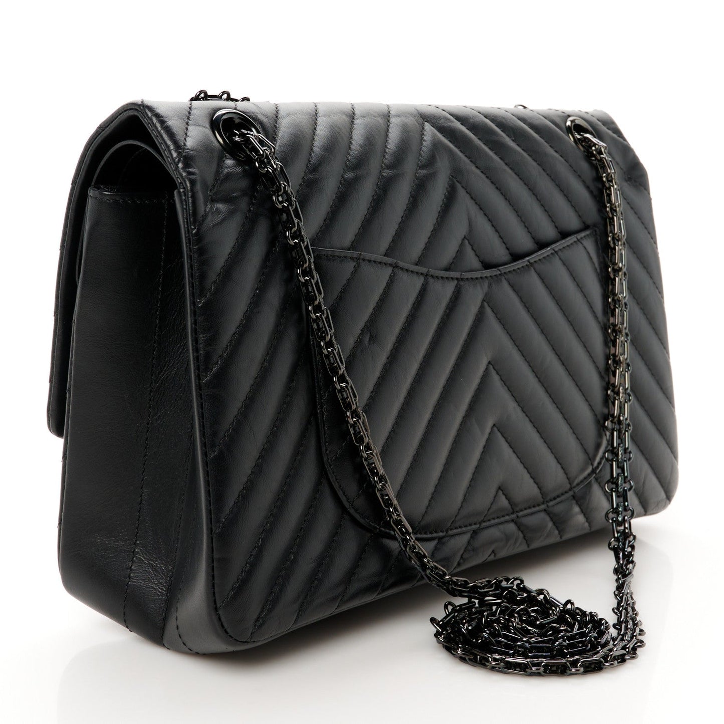Aged Calfskin Chevron Quilted 2.55 Reissue 226 Flap So Black