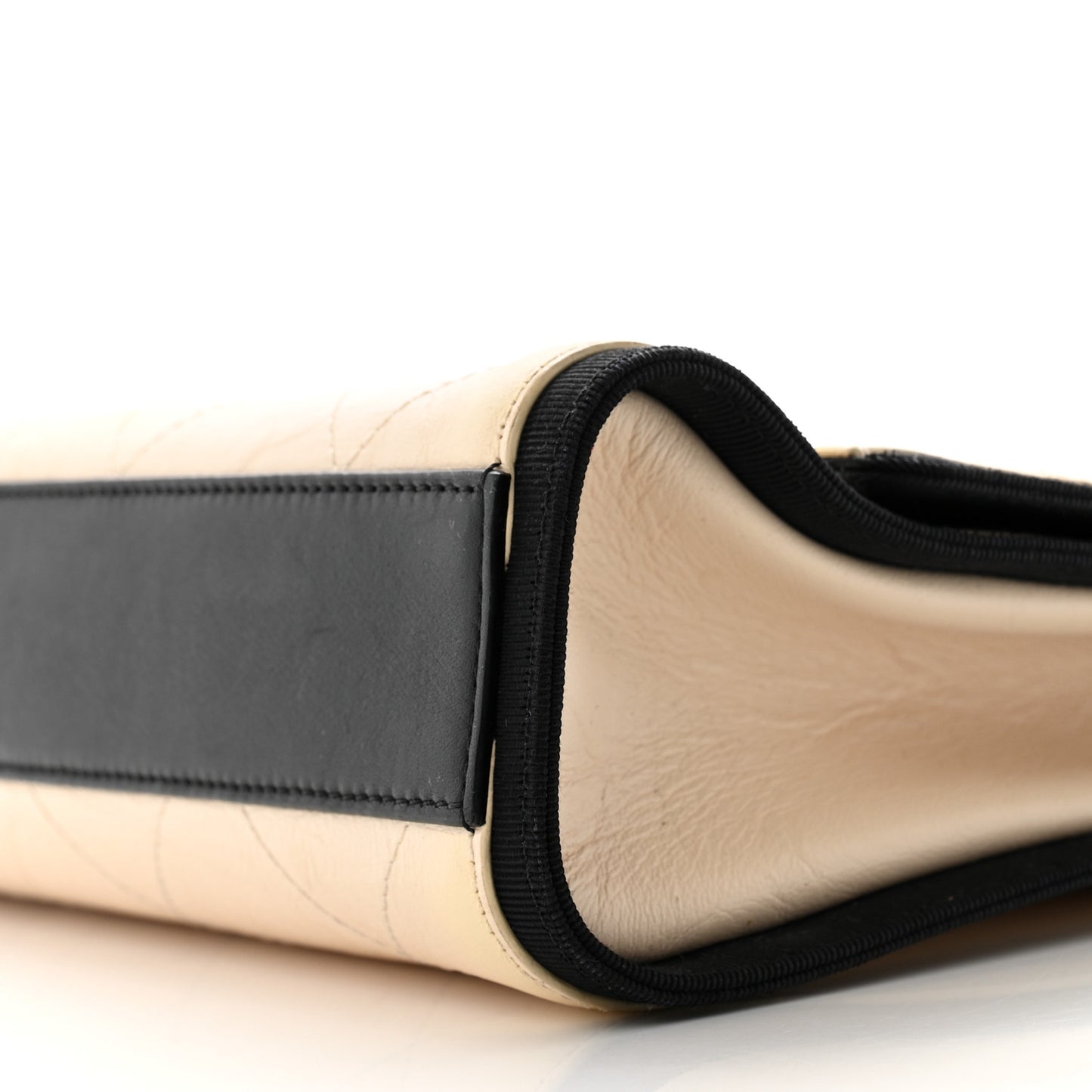Aged Calfskin Grosgrain Quilted Chain CC Flap Ivory Black