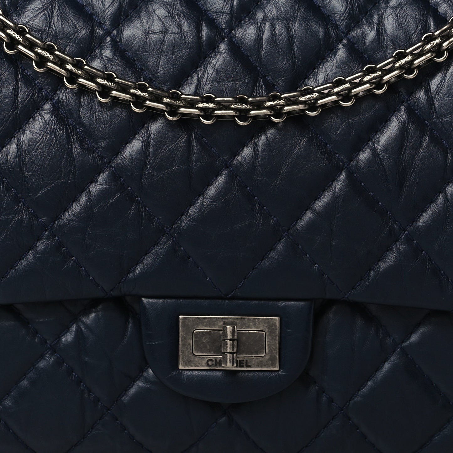 Aged Calfskin Quilted 2.55 Reissue 226 Flap Navy Blue