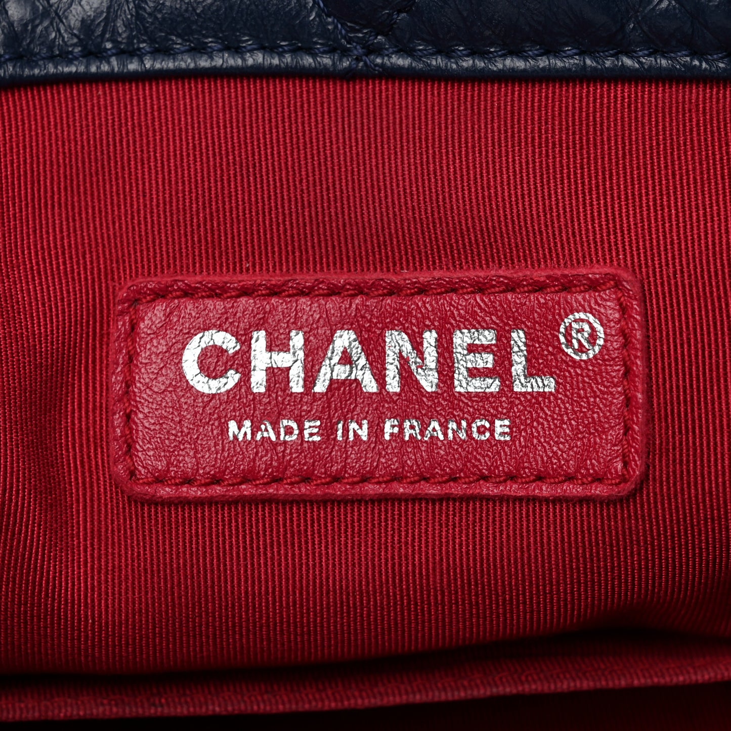 This is an authentic CHANEL Aged Calfskin Quilted Gabrielle Backpack in Navy and Black. This chic backpack is crafted of diamond-stitched aged dark blue calfskin leather. The shoulder bag features a smooth black leather base, a ruthenium CC logo on the front, gradient ruthenium, aged gold, and polished gold chain leather-threaded shoulder straps. The bag has an open top, revealing a red fabric interior with a patch pocket.Follow this item for alerts. Chanel is a registered trademark of Chanel. FASHIONPHILE is not affiliated with Chanel.