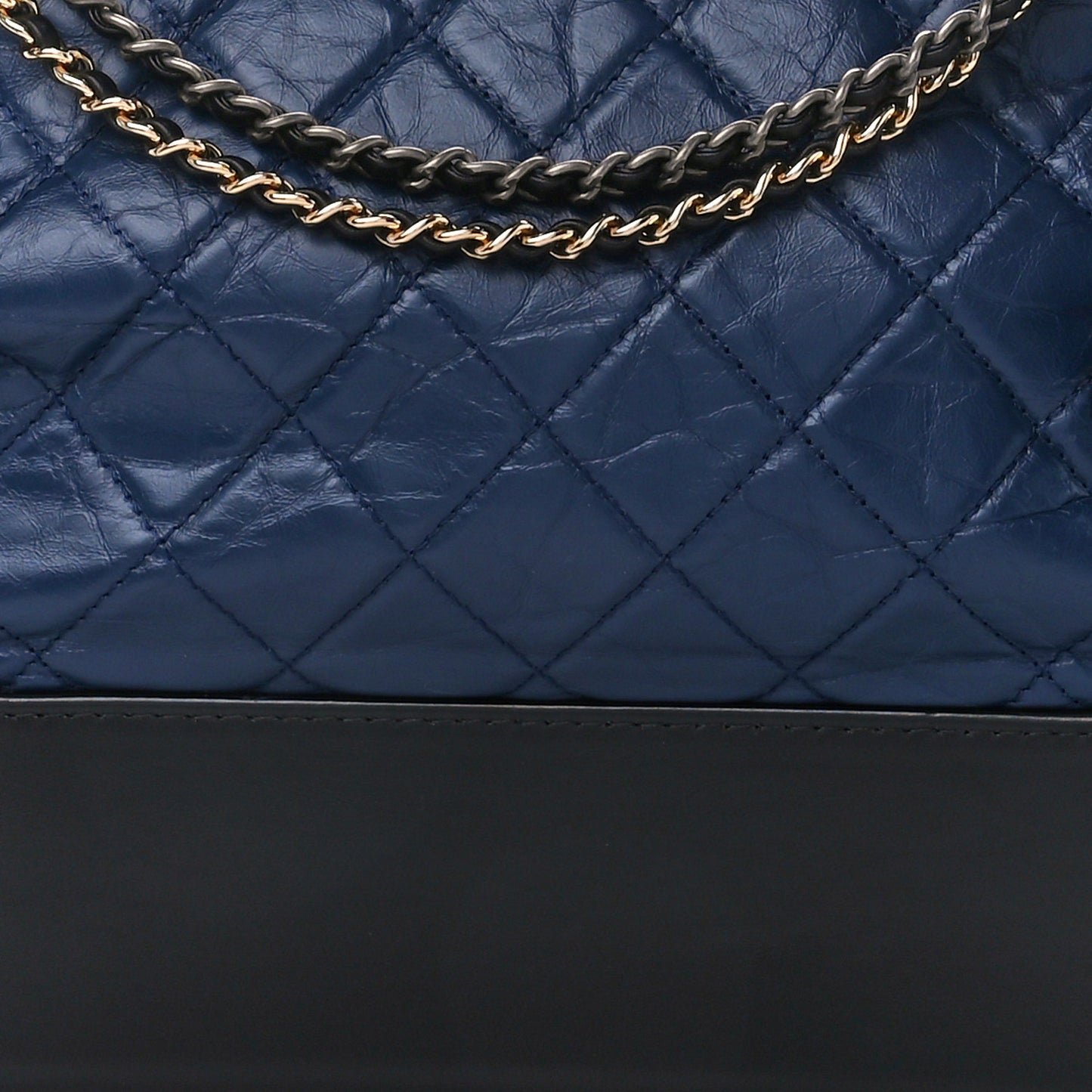 This is an authentic CHANEL Aged Calfskin Quilted Medium Gabrielle Hobo in Navy and Black. This chic cross body bag is featured in diamond stitched aged calfskin leather in dark blue with a sturdy smooth calfskin base. The shoulder bag features thin aged gold, polished silver tone and ruthenium chain link leather threaded shoulder straps with a shoulder pad. The top zipper opens with an aged gold CC, ruthenium chain link zipper pull to a spacious lovely deep red fabric interior with zipper and patch pockets.Follow this item for alerts. Chanel is a registered trademark of Chanel. FASHIONPHILE is not affiliated with Chanel.