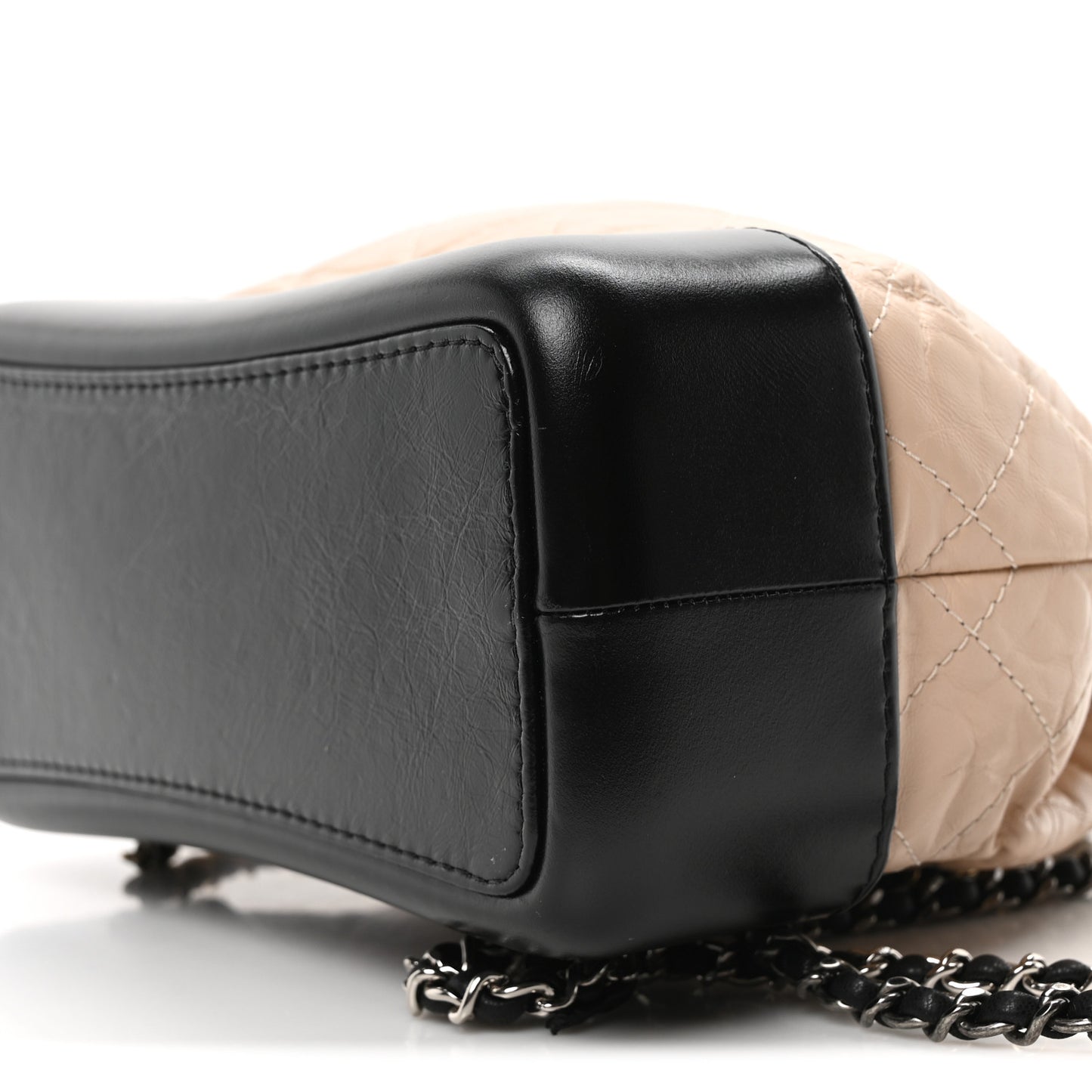 Aged Calfskin Quilted Small Gabrielle Backpack Beige Black