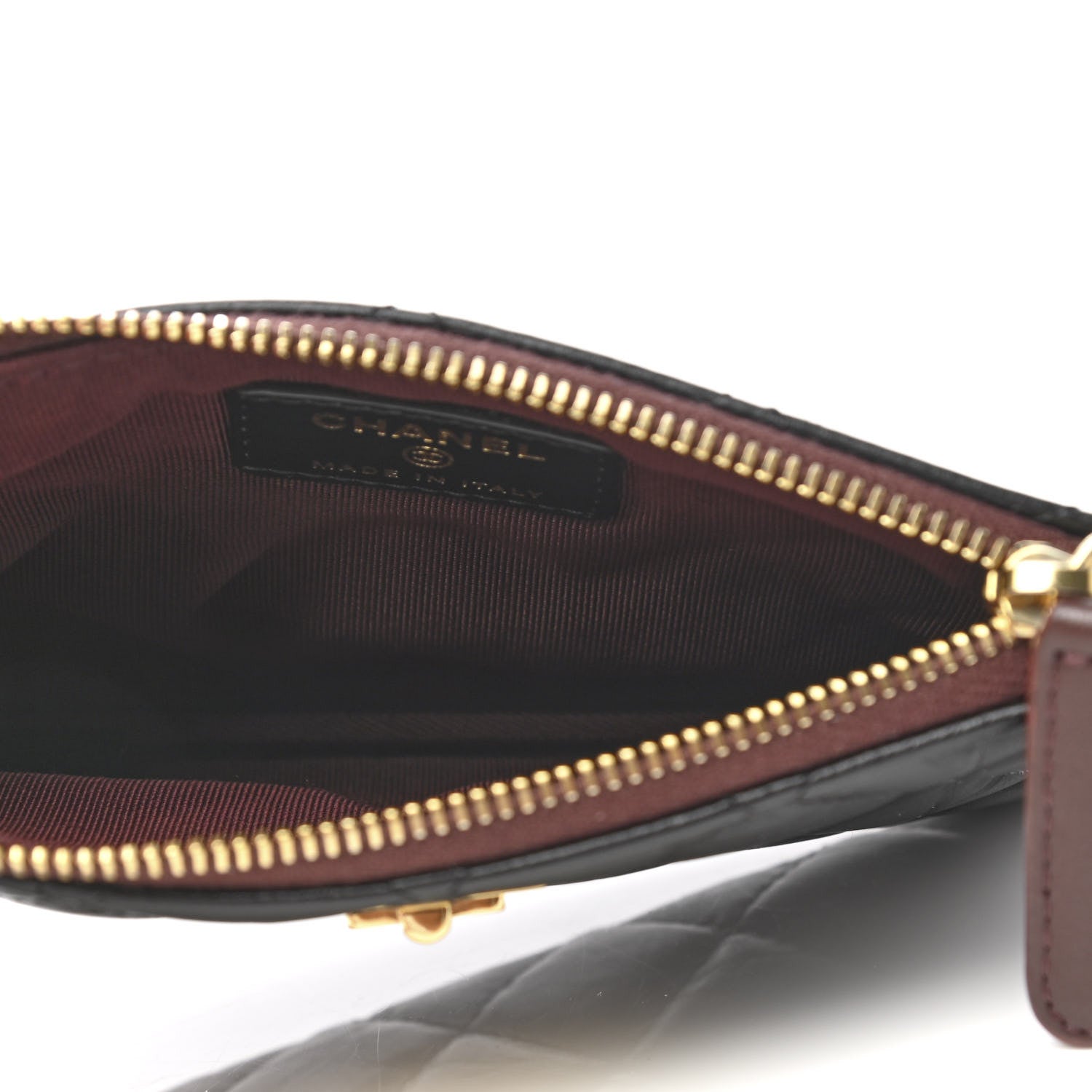 This is an authentic CHANEL Aged Calfskin Quilted Small Reissue Cosmetic Case in Black. This stylish cosmetic pouch is crafted of diamond-quilted calfskin leather in black, with a small polished gold faux mademoiselle turn-lock on the front. The top zipper opens to a burgundy fabric interior.Follow this item for alerts. Chanel is a registered trademark of Chanel. FASHIONPHILE is not affiliated with Chanel.