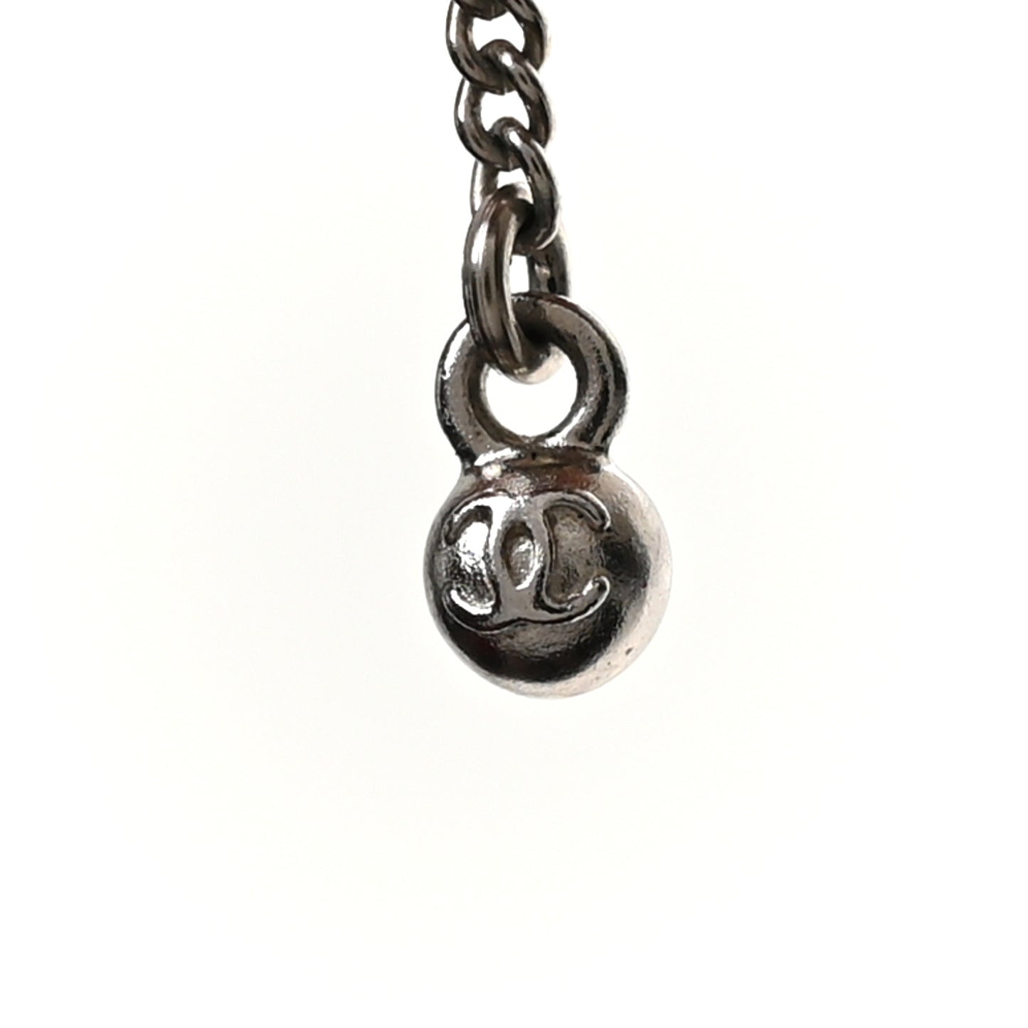This is an authentic pair of CHANEL Baguette Crystal CC Drop Earrings in Silver. These stunning earrings feature a silver drop chain with a hanging Chanel CC encrusted with baguette crystals.Follow this item for alerts. Chanel is a registered trademark of Chanel. FASHIONPHILE is not affiliated with Chanel.