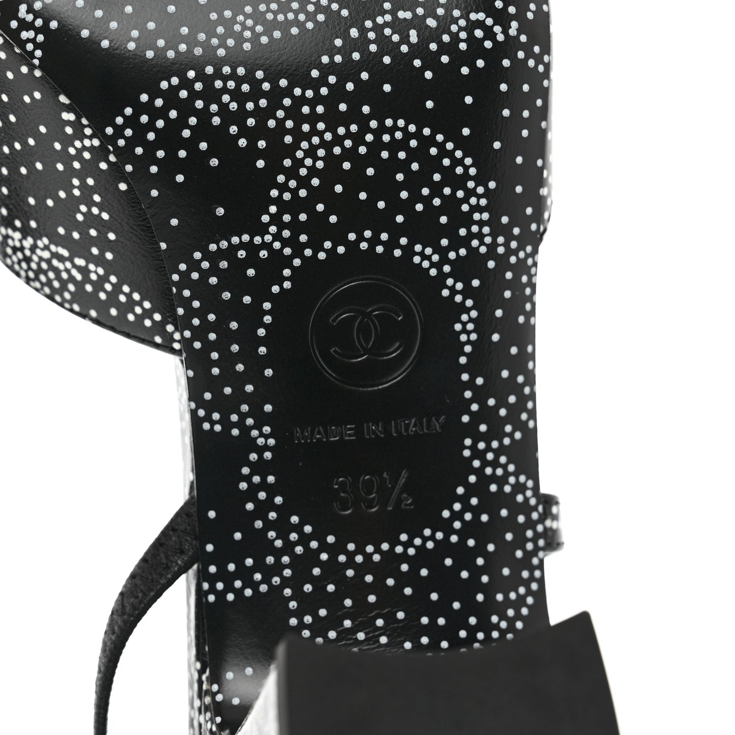 Calfskin Camellia Printed Cap Toe CC Slingback Pumps 39.5 Black White
