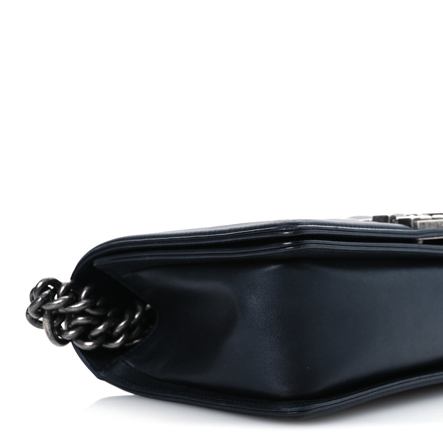 Calfskin Chevron Quilted Medium Boy Flap Black
