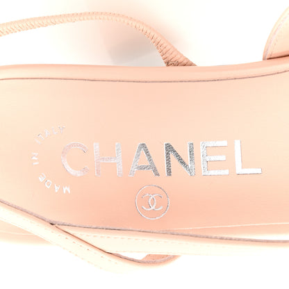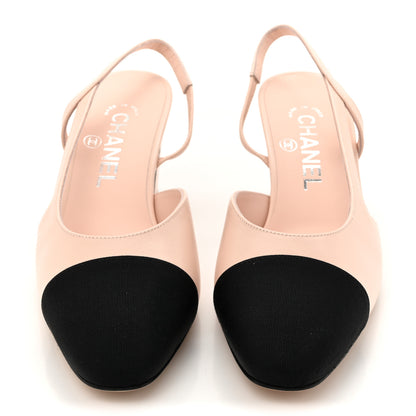 Calfskin Grosgrain Cap Toe CC Slingback Pumps 37 Light Pink Black