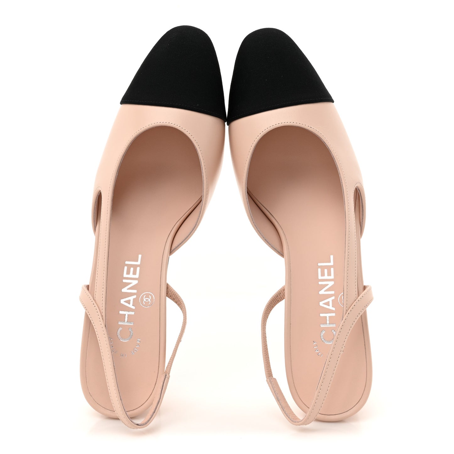 Chanel/ Bags/ Accessories /Chanel Calfskin Grosgrain Cap Toe CC Slingback Pumps 37 Light Pink Black