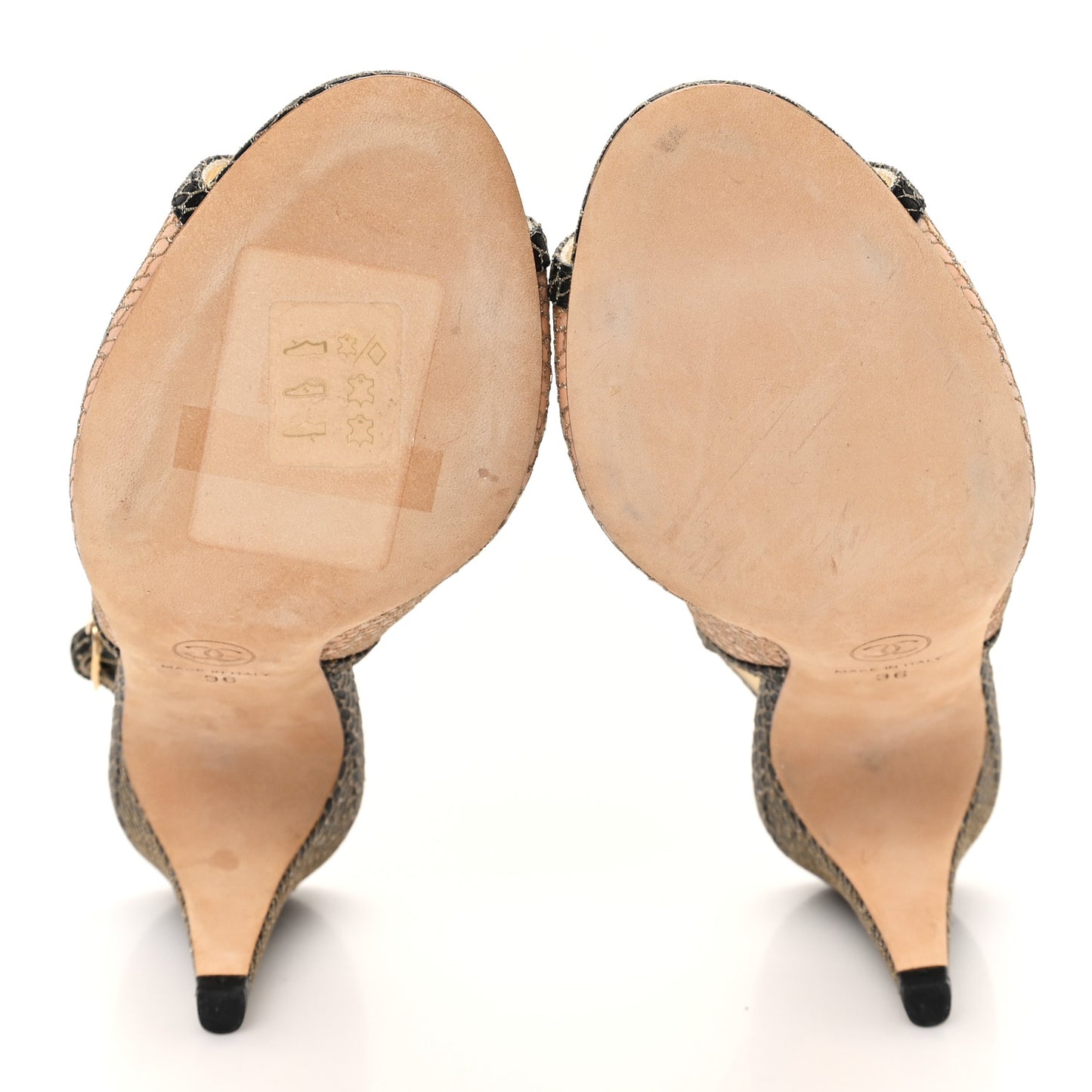 Chanel/ Accessories/ Shoes /Chanel Calfskin Mesh Pearl CC Peep Toe Slingback Pumps 36 Salmon Black