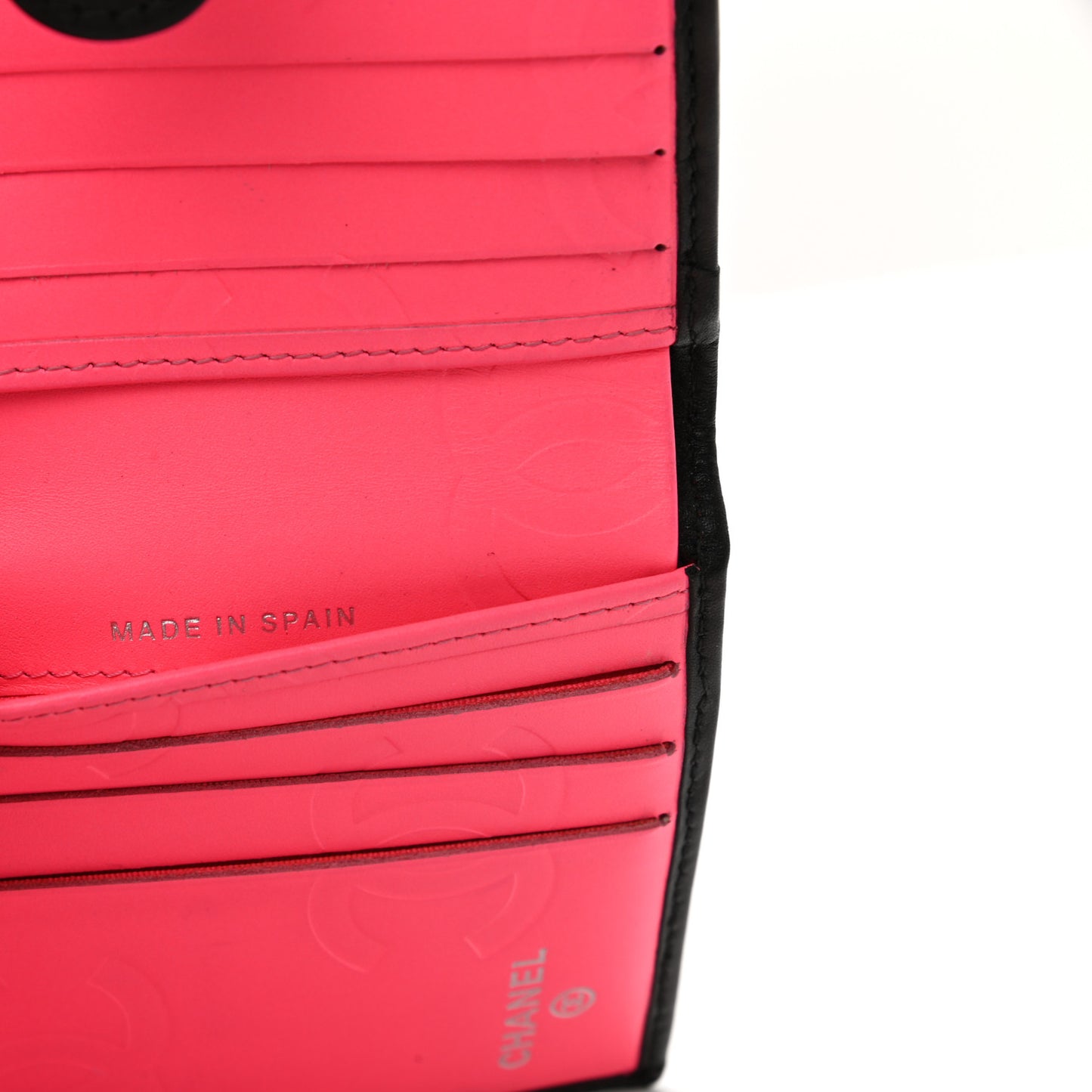 This is an authentic CHANEL Calfskin Quilted Cambon Business Card Holder in Black. This ultra-chic card case is crafted of luxurious diamond quilted calfskin leather with a large Chanel CC patent leather logo. The case features a large card slot with room for an ample number of cards and bright pink fabric lining.Follow this item for alerts. Chanel is a registered trademark of Chanel. FASHIONPHILE is not affiliated with Chanel.